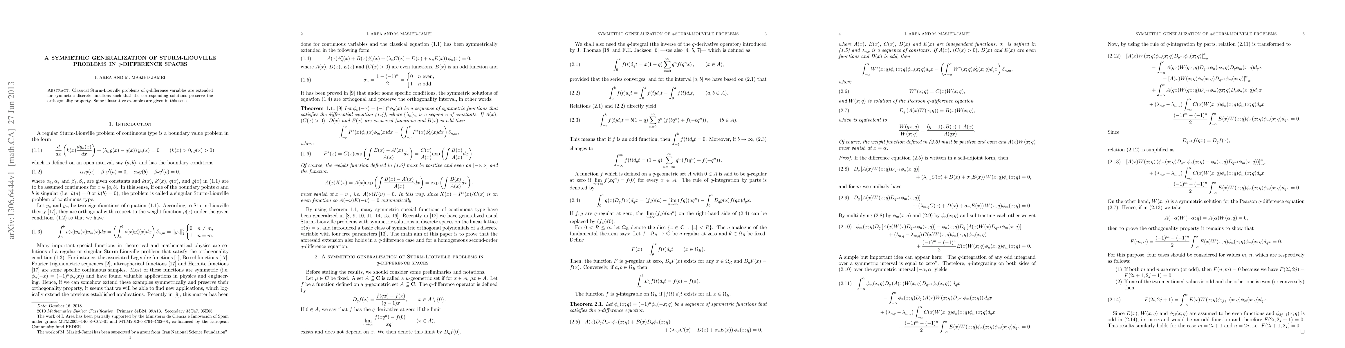 This paper generalizes classical Sturm-Liouville problems for symmetric discrete functions using $q$-difference variables, ensuring that the solutions maintain orthogonality. Examples are provided to demonstrate the practical application of this generalization.