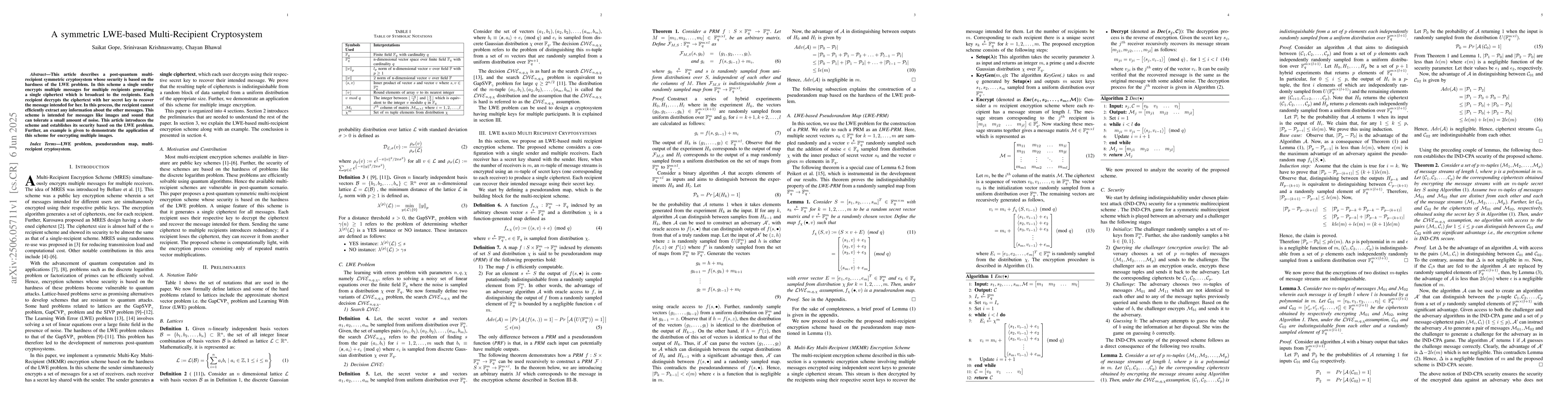 A post-quantum multirecipient symmetric cryptosystem is proposed, using the hardness of the LWE problem for secure encryption of multiple messages to multiple recipients.
