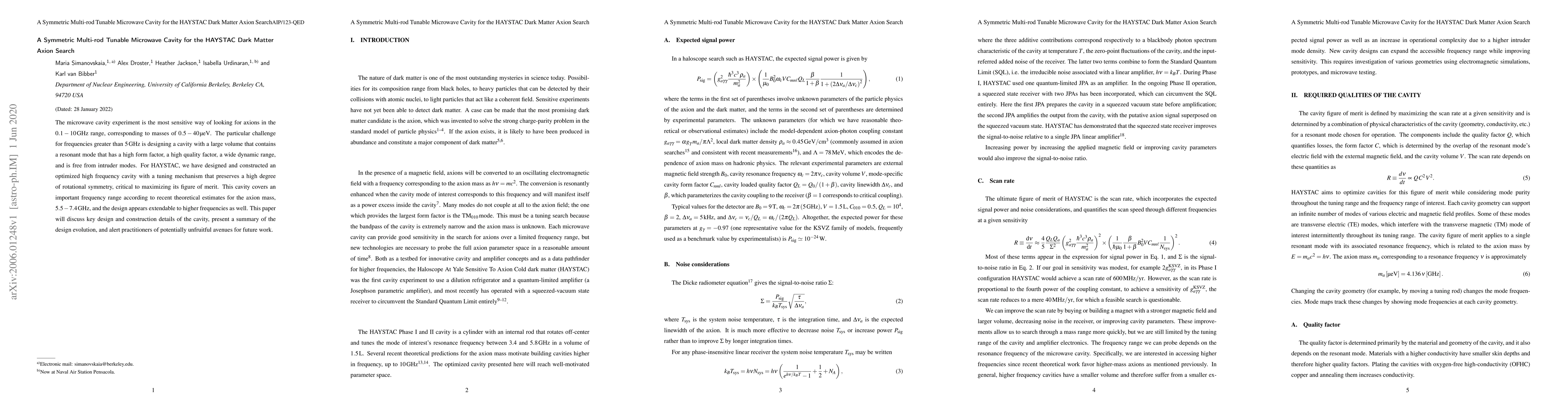 This paper details the design and construction of a symmetric multi-rod tunable microwave cavity for the HAYSTAC dark matter axion search, emphasizing its high rotational symmetry and optimized performance for frequencies between 5.5 - 7.4 GHz. The cavity aims to maximize sensitivity by balancing high form factor, quality factor, and dynamic range while avoiding intruder modes.