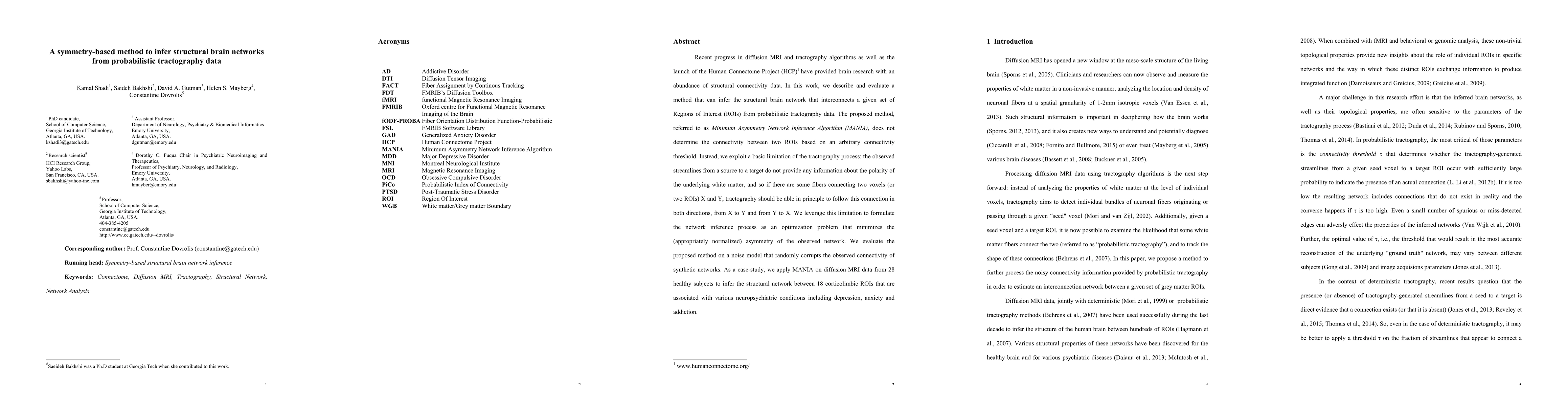Recent progress in diffusion MRI and tractography algorithms as well as the launch of the Human Connectome Project (HCP) have provided brain research with an abundance of structural connectivity data. In this work, we describe and evaluate a method that can infer the structural brain network that interconnects a given set of Regions of Interest (ROIs) from tractography data. The proposed method, referred to as Minimum Asymmetry Network Inference Algorithm (MANIA), differs from prior work because it does not determine the connectivity between two ROIs based on an arbitrary connectivity threshold. Instead, we exploit a basic limitation of the tractography process: the observed streamlines from a source to a target do not provide any information about the polarity of the underlying white matter, and so if there are some fibers connecting two voxels (or two ROIs) X and Y tractography should be able in principle to follow this connection in both directions, from X to Y and from Y to X. We leverage this limitation to formulate the network inference process as an optimization problem that minimizes the (appropriately normalized) asymmetry of the observed network. We evaluate the proposed method on a noise model that randomly corrupts the observed connectivity of synthetic networks. As a case-study, we apply MANIA on diffusion MRI data from 28 healthy subjects to infer the structural network between 18 corticolimbic ROIs that are associated with various neuropsychiatric conditions including depression, anxiety and addiction.