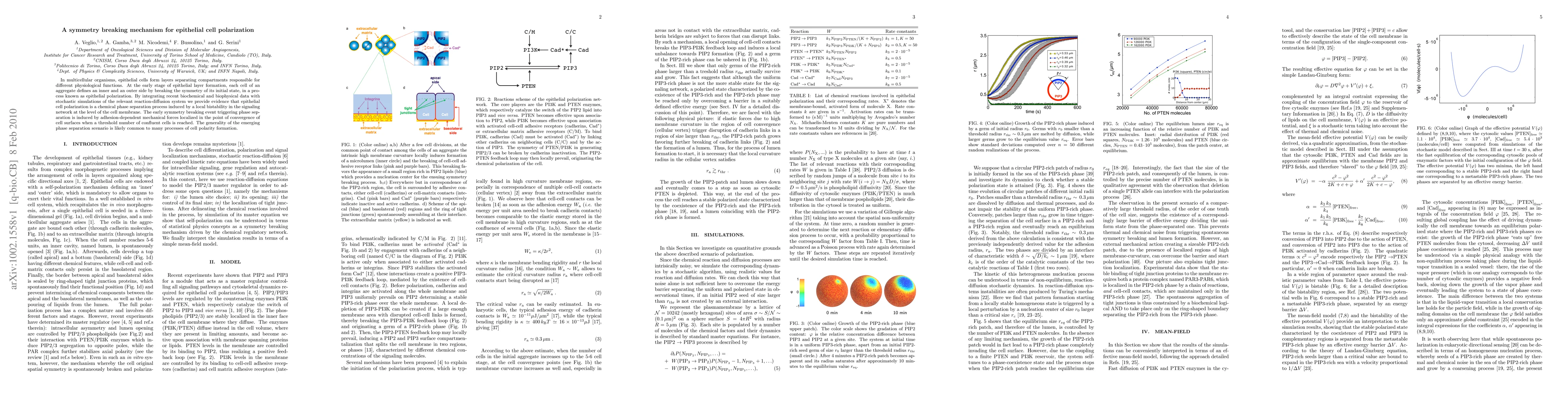 In multicellular organisms, epithelial cells form layers separating compartments responsible for different physiological functions. At the early stage of epithelial layer formation, each cell of an aggregate defines an inner and an outer side by breaking the symmetry of its initial state, in a process known as epithelial polarization. By integrating recent biochemical and biophysical data with stochastic simulations of the relevant reaction-diffusion system we provide evidence that epithelial cell polarization is a chemical phase separation process induced by a local bistability in the signaling network at the level of the cell membrane. The early symmetry breaking event triggering phase separation is induced by adhesion-dependent mechanical forces localized in the point of convergence of cell surfaces when a threshold number of confluent cells is reached. The generality of the emerging phase separation scenario is likely common to many processes of cell polarity formation.