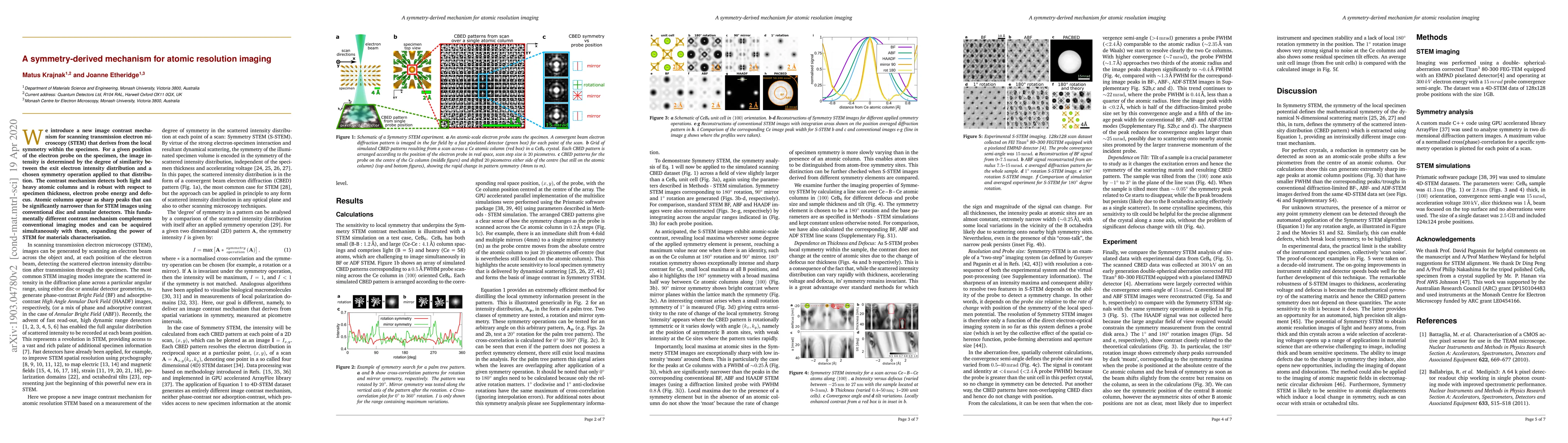 A new contrast mechanism for scanning transmission electron microscopy enhances atomic resolution imaging by detecting symmetry in specimen exit electron intensity distributions, revealing sharp peaks for atomic columns with improved sensitivity and precision.
