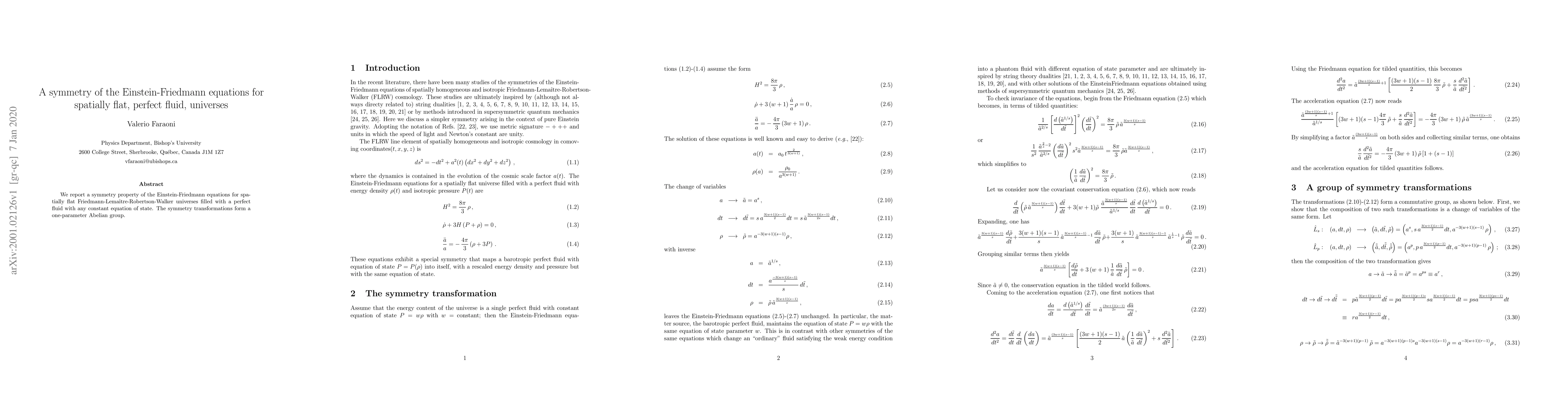 Summary: This paper reveals a symmetry property in the Einstein-Friedmann equations for spatially flat universes filled with perfect fluids, demonstrating that the transformations form a one-parameter Abelian group. This finding provides deeper insights into the dynamics of such cosmological models.