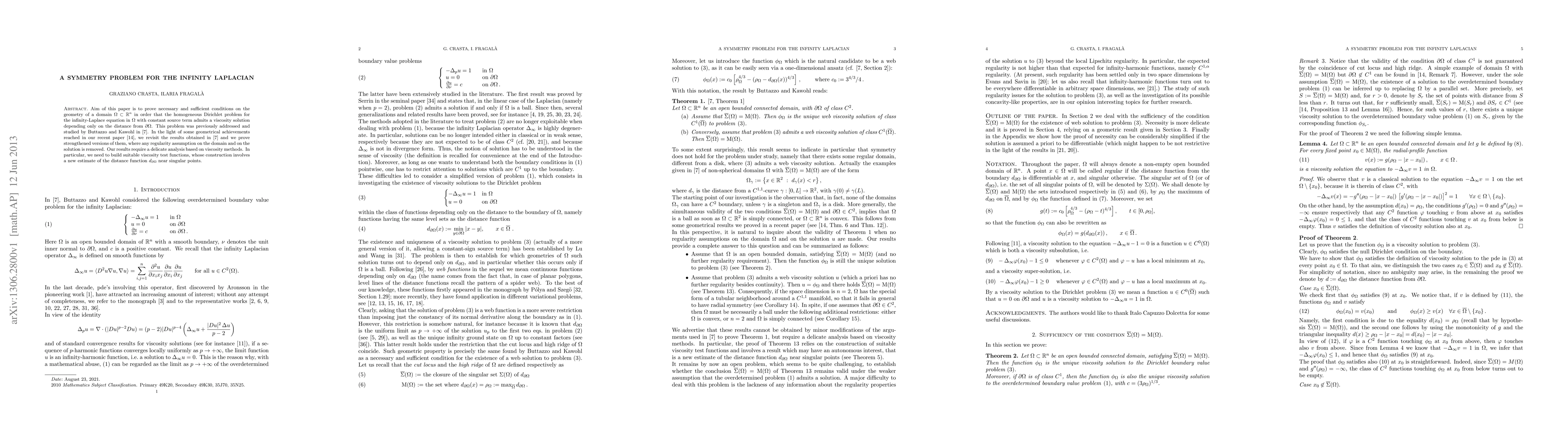 Aim of this paper is to prove necessary and sufficient conditions on the geometry of a domain $\Omega \subset \mathbb{R}^n$ in order that the homogeneous Dirichlet problem for the infinity-Laplace equation in $\Omega$ with constant source term admits a viscosity solution depending only on the distance from $\partial \Omega$. This problem was previously addressed and studied by Buttazzo and Kawohl. In the light of some geometrical achievements reached in our recent paper "On the characterization of some classes of proximally smooth sets", we revisit the results obtained by Buttazzo and Kawohl and we prove strengthened versions of them, where any regularity assumption on the domain and on the solution is removed. Our results require a delicate analysis based on viscosity methods. In particular, we need to build suitable viscosity test functions, whose construction involves a new estimate of the distance function near singular points.