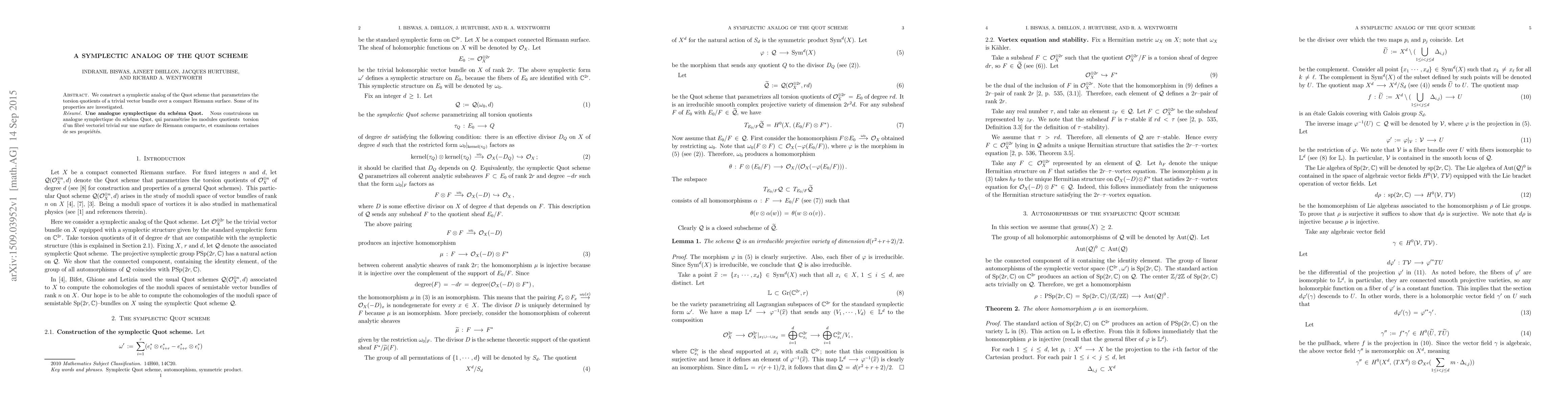 A symplectic analog of the Quot scheme is constructed to study torsion quotients of a trivial vector bundle over compact Riemann surfaces, with some properties investigated.