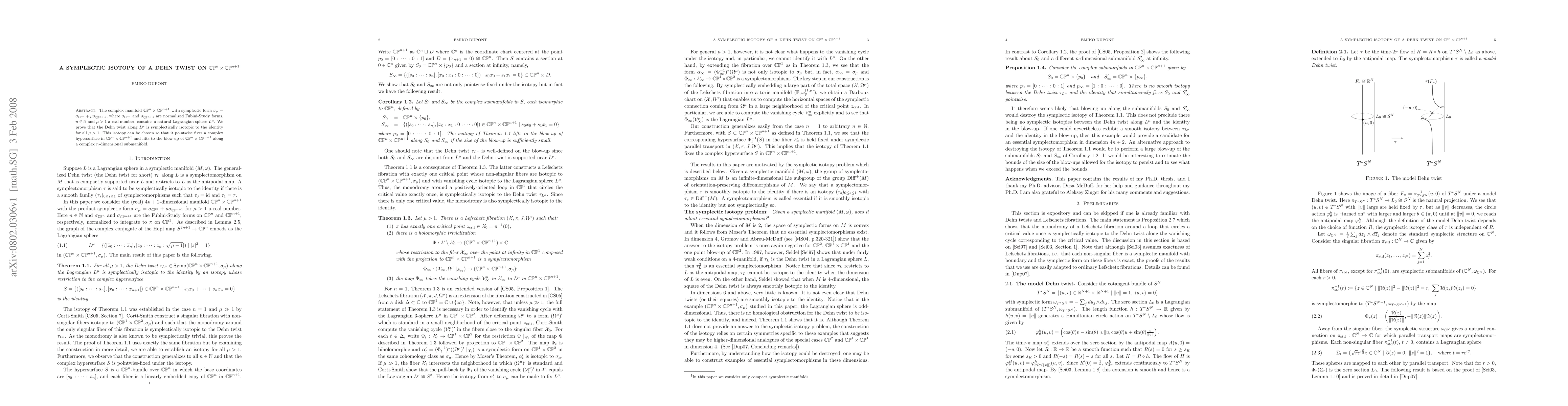 The complex manifold CP^n x CP^{n+1} with symplectic form \sigma_\mu=\sigma_{CP^n}+\mu\sigma_{CP^{n+1}}, where \sigma_{CP^n} and \sigma_{CP^{n+1}} are normalized Fubini-Study forms, n a natural number and \mu>1 a real number, contains a natural Lagrangian sphere L^{\mu}. We prove that the Dehn twist along L^{\mu} is symplectically isotopic to the identity for all \mu>1. This isotopy can be chosen so that it pointwise fixes a complex hypersurface in CP^n x CP^{n+1} and lifts to the blow-up of CP^n x CP^{n+1} along a complex n-dimensional submanifold.