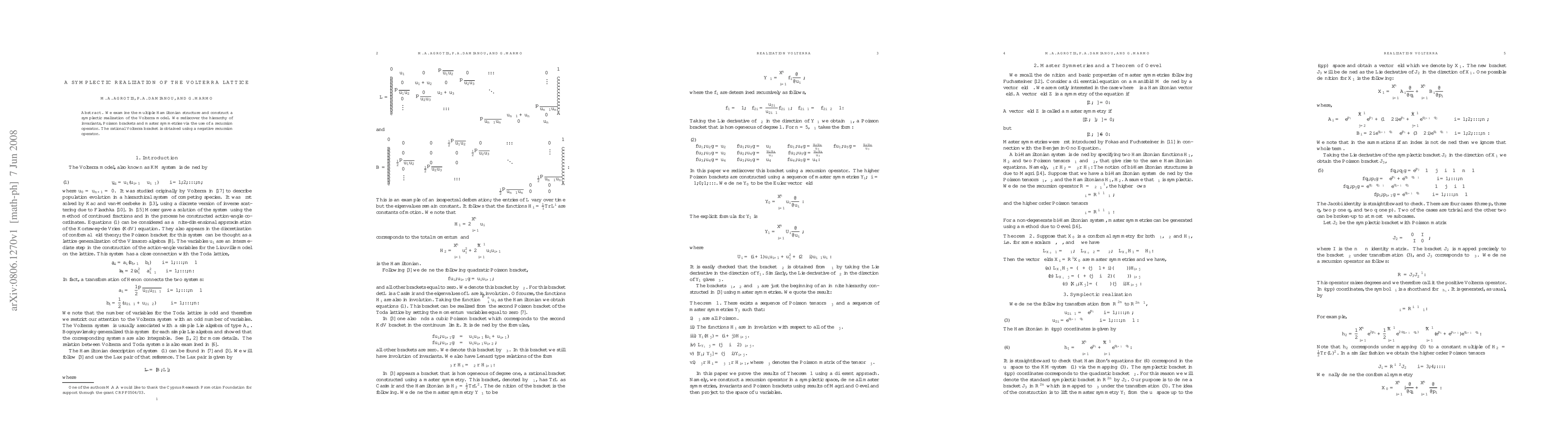 Researchers construct a symplectic realization of the Volterra model, rediscovering its invariants, Poisson brackets, and master symmetries using recursion operators.