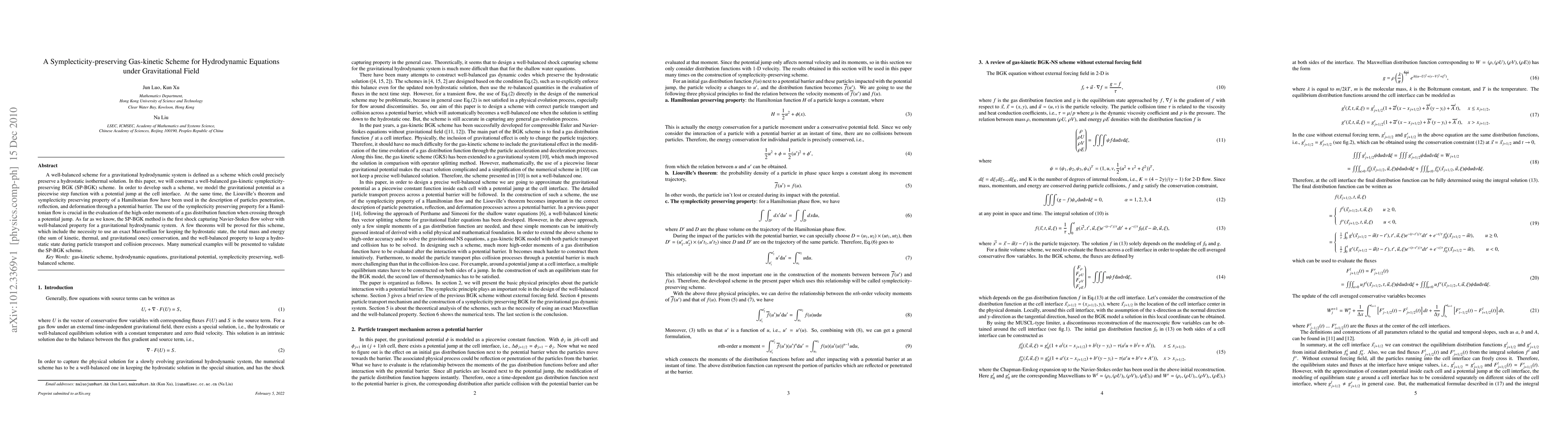 A new gas-kinetic scheme is proposed to simulate hydrodynamic equations under gravitational fields, preserving symplecticity and balance while capturing shocks with high accuracy.