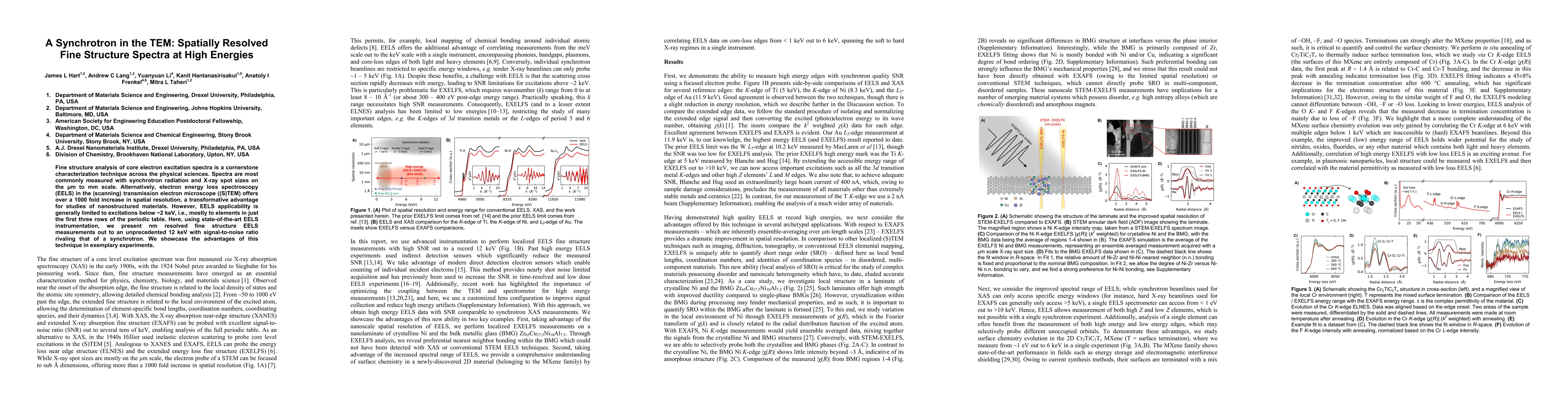 Fine structure analysis of core electron excitation spectra is a cornerstone characterization technique across the physical sciences. Spectra are most commonly measured with synchrotron radiation and X-ray spot sizes on the {\mu}m to mm scale. Alternatively, electron energy loss spectroscopy (EELS) in the (scanning) transmission electron microscope ((S)TEM) offers over a 1000 fold increase in spatial resolution, a transformative advantage for studies of nanostructured materials. However, EELS applicability is generally limited to excitations below ~2 keV, i.e., mostly to elements in just the first three rows of the periodic table. Here, using state-of-the-art EELS instrumentation, we present nm resolved fine structure EELS measurements out to an unprecedented 12 keV with signal-to-noise ratio rivaling that of a synchrotron. We showcase the advantages of this technique in exemplary experiments.