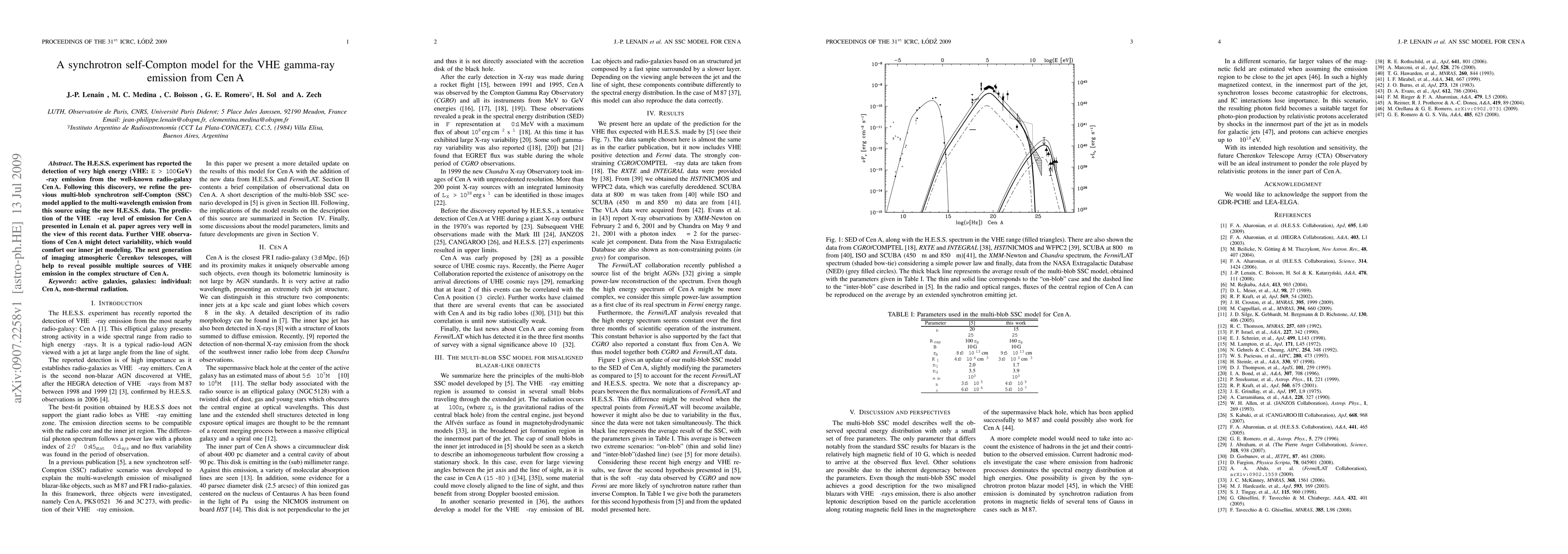 This paper refines a synchrotron self-Compton model for the VHE gamma-ray emission from Cen A, using new H.E.S.S. data, and finds good agreement with previous predictions. Future observations may reveal variability and multiple emission sources in Cen A.