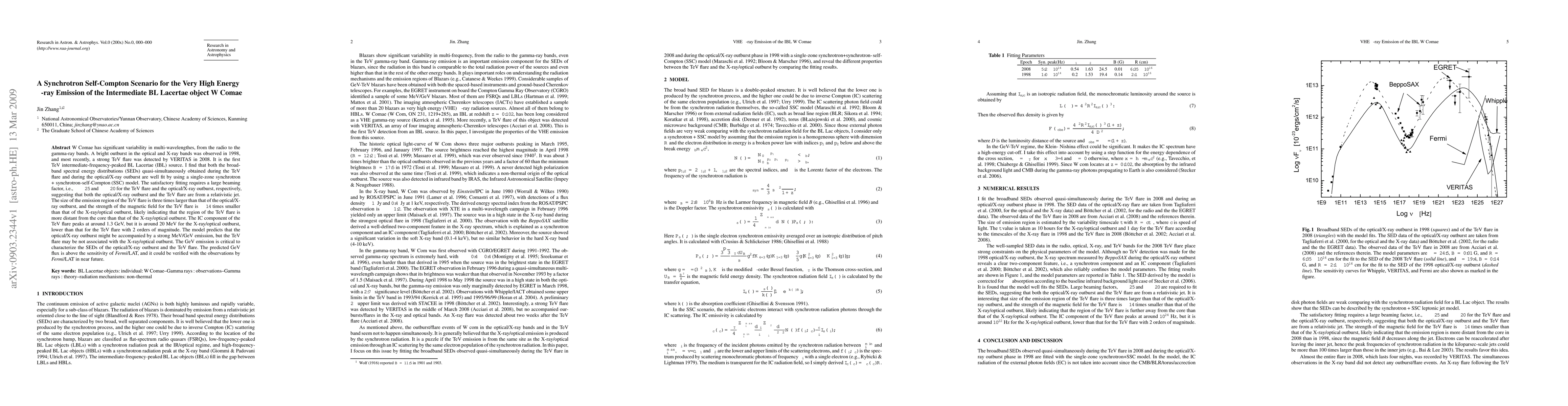 The research explores W Comae's gamma-ray emission using a synchrotron self-Compton (SSC) model, finding that both its TeV flare and optical/X-ray outburst can be explained by this model with large beaming factors. The study suggests distinct emission regions for each event, with the TeV flare region being larger and having a weaker magnetic field. It predicts detectable GeV emission during the optical/X-ray outburst, testable with Fermi/LAT observations.