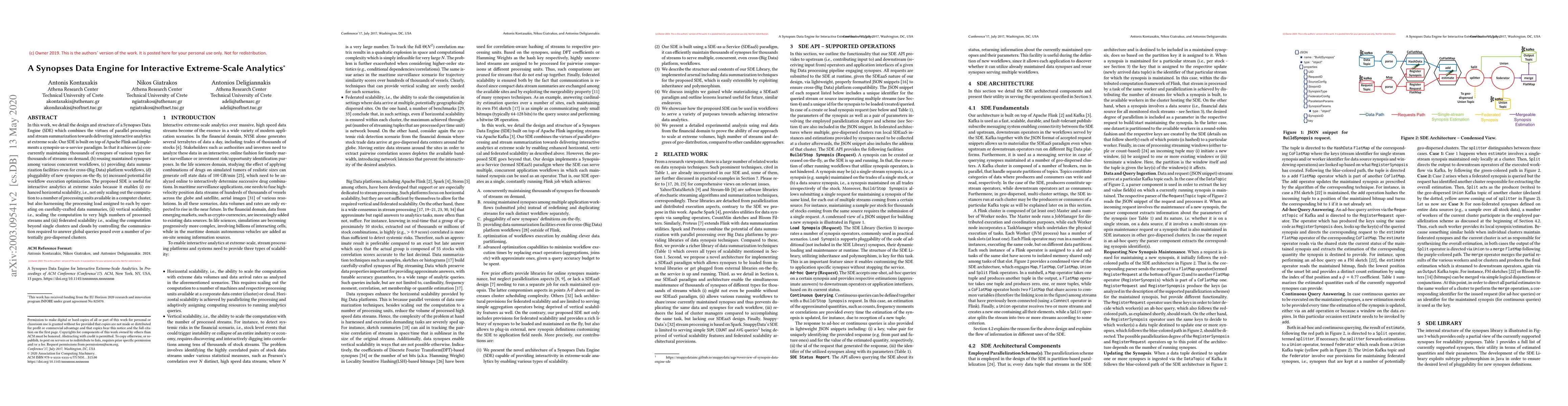 This paper introduces a Synopses Data Engine (SDE) built on Apache Flink for interactive extreme-scale analytics, combining parallel processing and stream summarization. It offers concurrent maintenance of numerous synopses, reusability across workflows, and scalability across clusters and clouds.