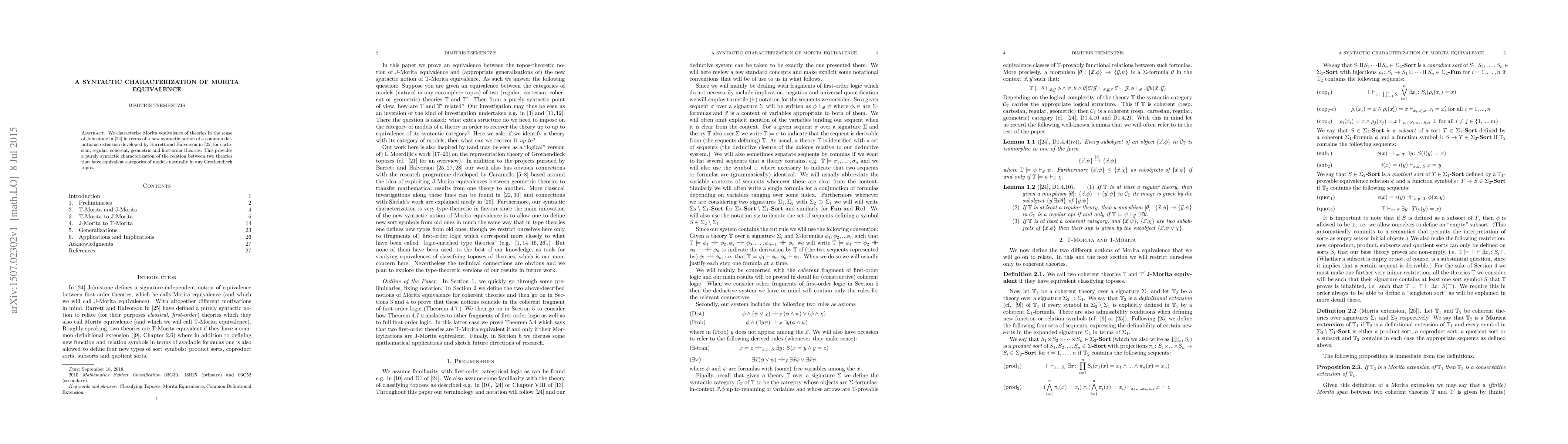 This paper provides a syntactic characterization of Morita equivalence between theories by introducing a new notion of common definitional extension. It establishes a purely syntactic method for determining equivalence between theories with equivalent categories of models in any Grothendieck topos.