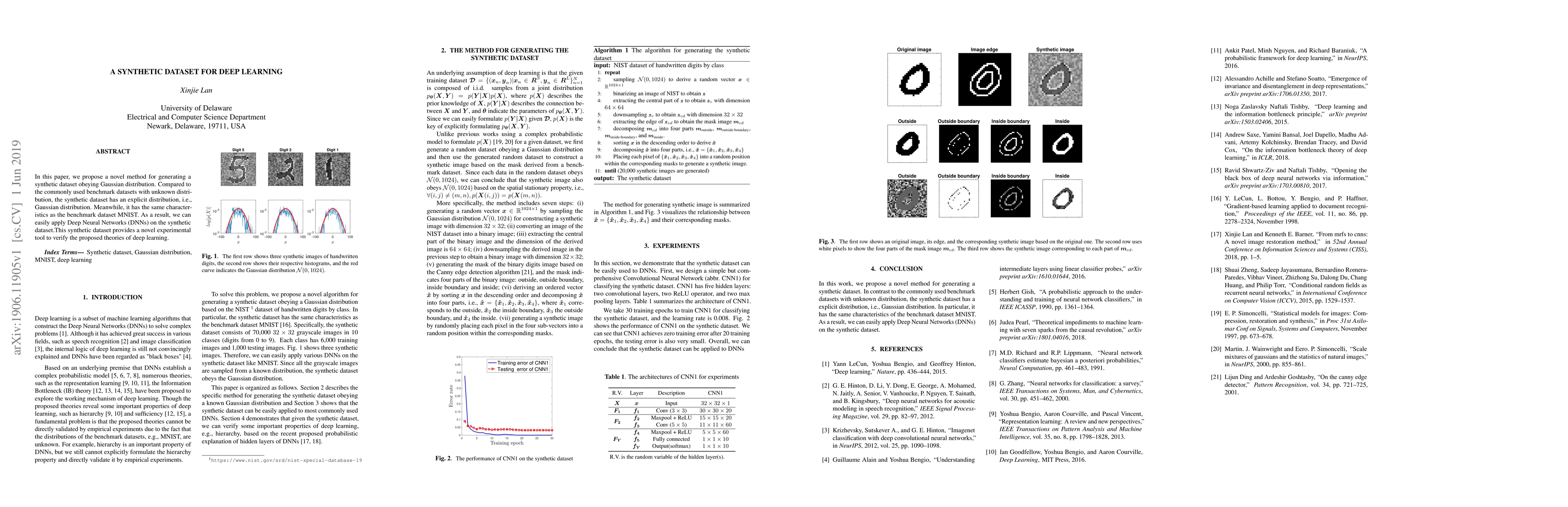 In this paper, we propose a novel method for generating a synthetic dataset obeying Gaussian distribution. Compared to the commonly used benchmark datasets with unknown distribution, the synthetic dataset has an explicit distribution, i.e., Gaussian distribution. Meanwhile, it has the same characteristics as the benchmark dataset MNIST. As a result, we can easily apply Deep Neural Networks (DNNs) on the synthetic dataset. This synthetic dataset provides a novel experimental tool to verify the proposed theories of deep learning.