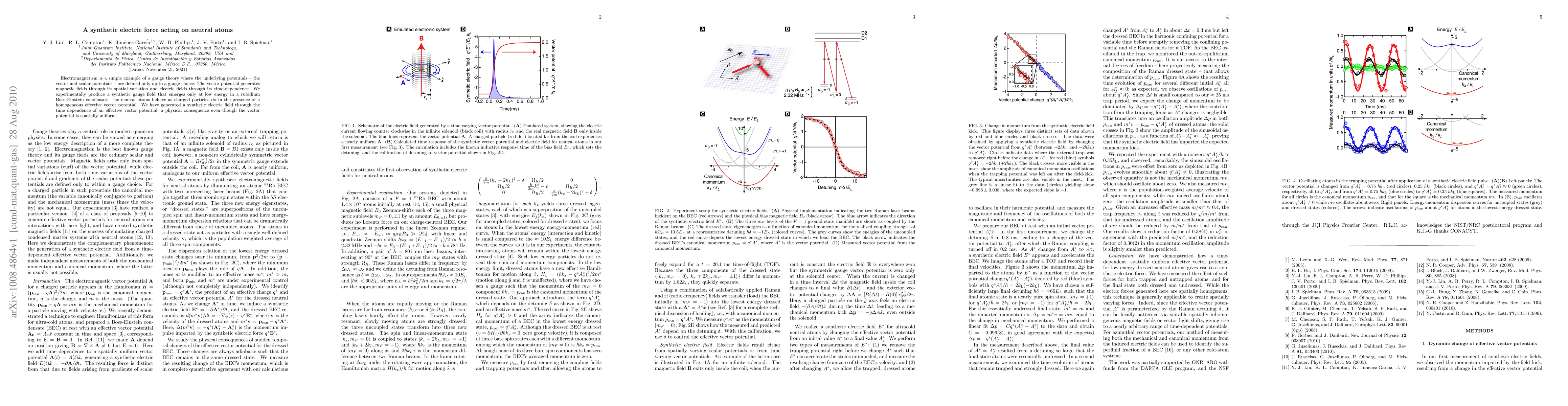 Electromagnetism is a simple example of a gauge theory where the underlying potentials -- the vector and scalar potentials -- are defined only up to a gauge choice. The vector potential generates magnetic fields through its spatial variation and electric fields through its time-dependence. We experimentally produce a synthetic gauge field that emerges only at low energy in a rubidium Bose-Einstein condensate: the neutral atoms behave as charged particles do in the presence of a homogeneous effective vector potential. We have generated a synthetic electric field through the time dependence of an effective vector potential, a physical consequence even though the vector potential is spatially uniform.