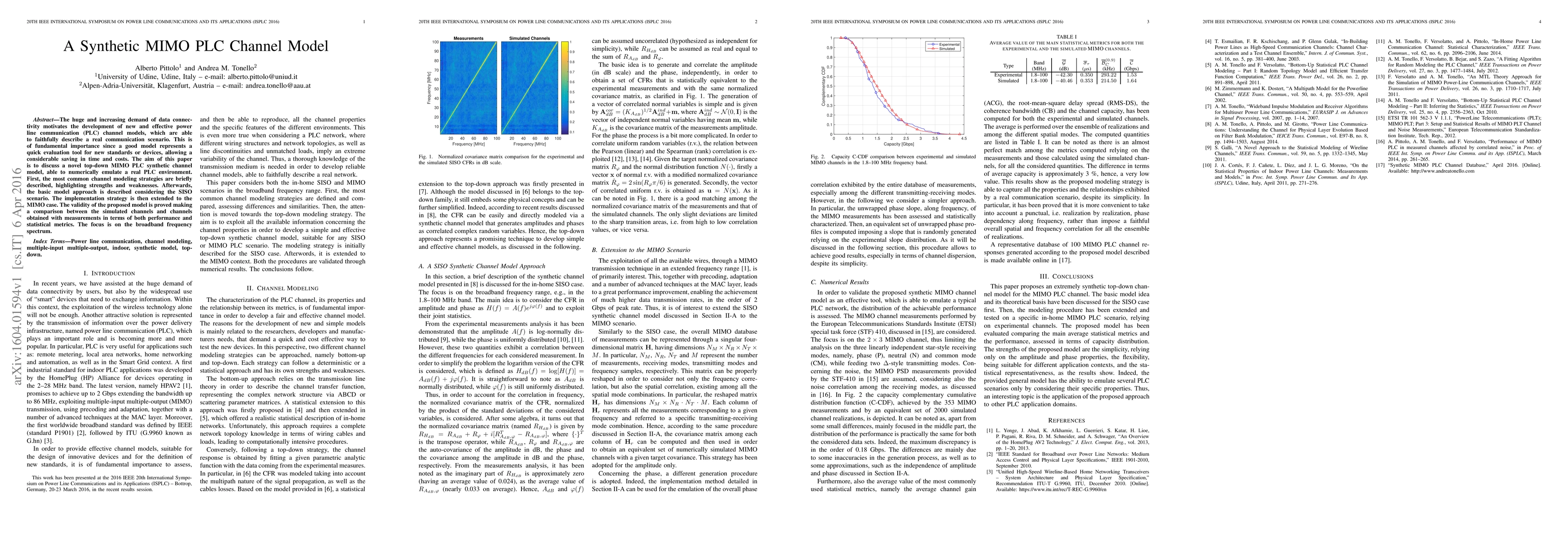 A new MIMO power line communication channel model is proposed to emulate real PLC environments, offering a faster and more cost-effective alternative for evaluating new standards or devices.
