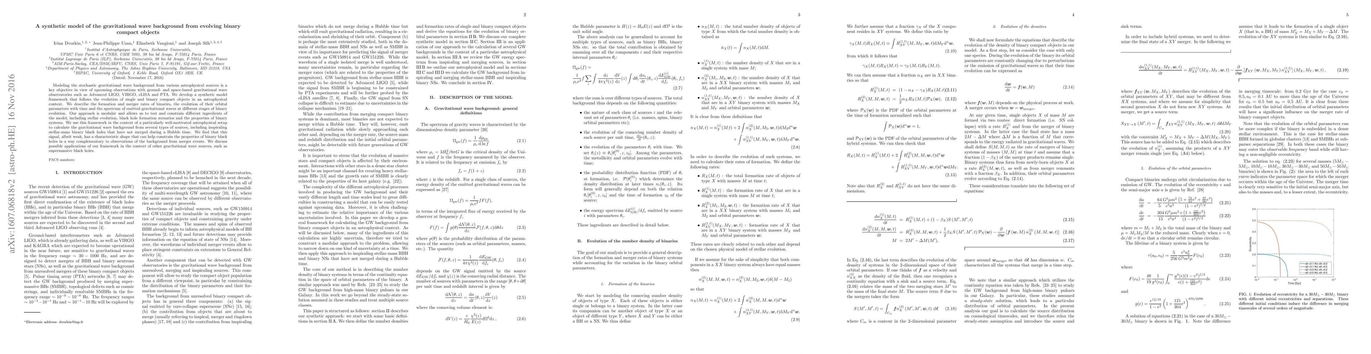 This paper develops a synthetic model to simulate the gravitational wave background from evolving binary compact objects, focusing on stellar-mass binary black holes. It provides a modular framework to study the formation, evolution, and merger rates of these binaries, and their gravitational wave emissions, which can complement observations from mergers.