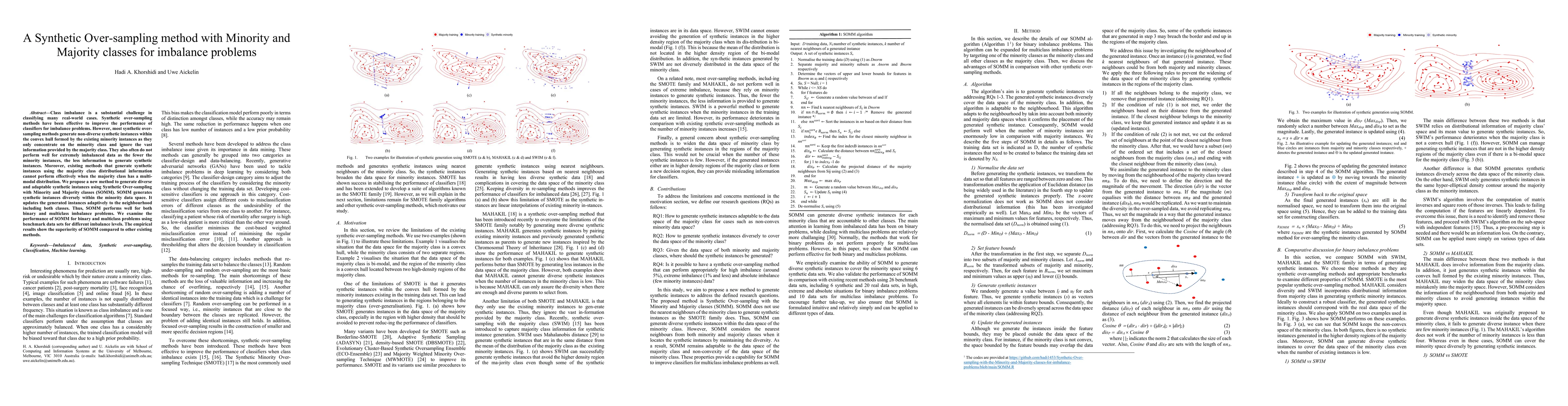 This paper proposes a new synthetic over-sampling method called SOMM that generates diverse and adaptable synthetic instances for both minority and majority classes to address class imbalance problems. SOMM outperforms existing methods by effectively utilizing information from both classes, especially in multi-modal distributions and extremely imbalanced datasets.