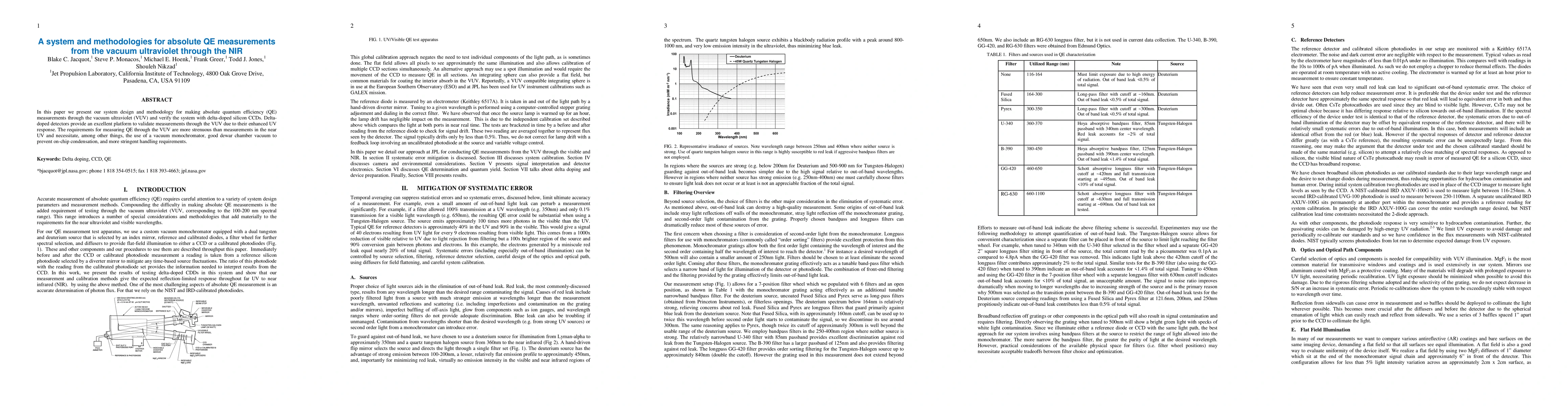 This paper introduces a system and methodology for absolute quantum efficiency measurements from the vacuum ultraviolet to the near infrared, validated using delta-doped silicon CCDs. The stringent requirements for VUV measurements include a vacuum monochromator and stringent handling to prevent condensation.
