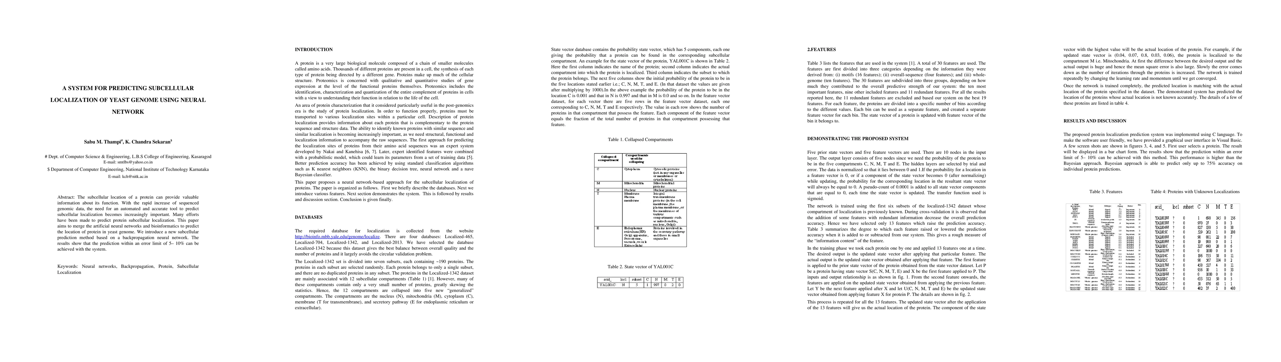 This paper introduces a neural network-based system to predict the subcellular localization of proteins in yeast genomes, achieving an accuracy within 5 to 10 percent error. The method merges artificial neural networks with bioinformatics for automated and precise predictions.