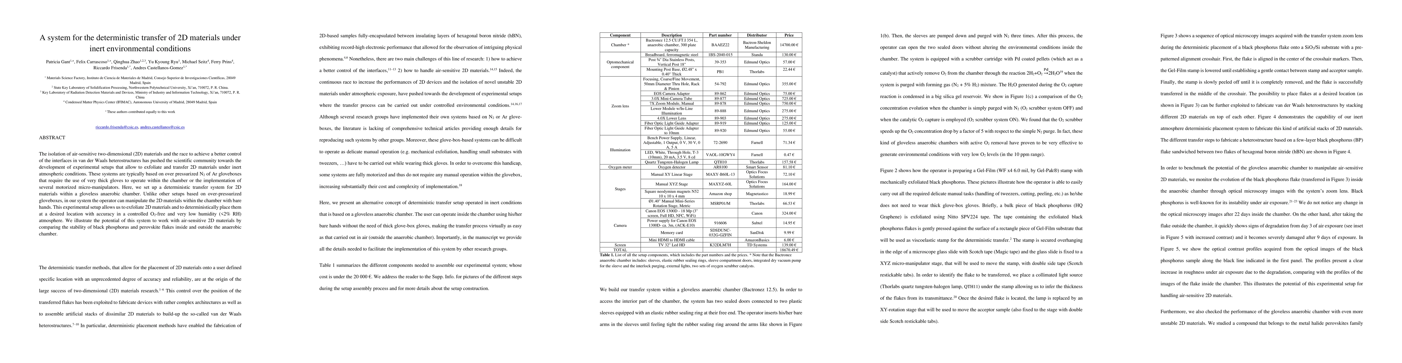 The research describes the development of a gloveless anaerobic chamber system for the deterministic transfer of 2D materials under inert conditions, allowing direct manipulation of air-sensitive materials with bare hands.