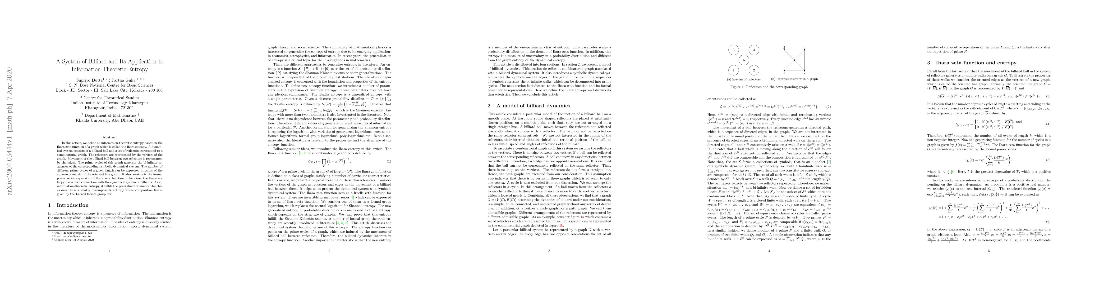 This paper introduces the Ihara entropy as a new information-theoretic entropy based on graph theory, with applications to billiard dynamics and fulfilling generalized Shannon-Khinchin axioms.