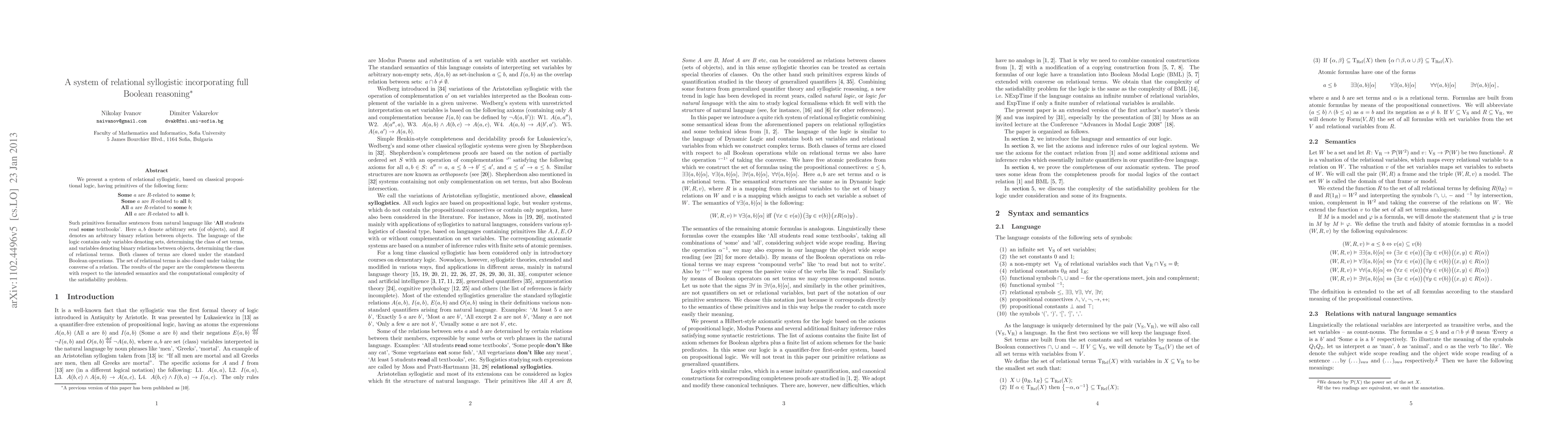 Researchers developed a system of relational syllogistic that uses classical propositional logic to formalize sentences about relationships between objects, with applications in natural language processing.