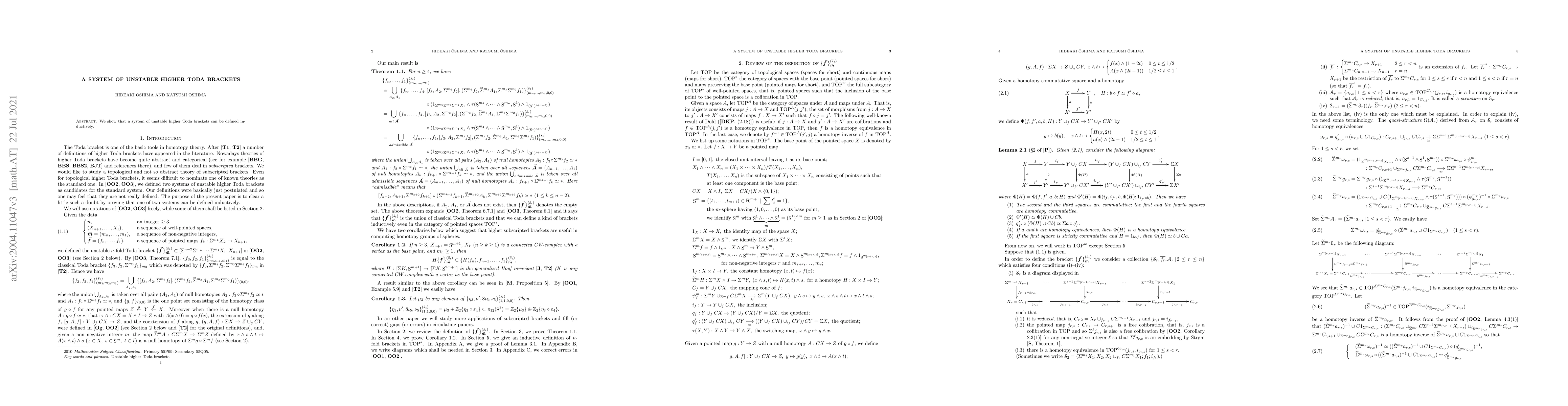 Summary: This paper presents an inductive method for defining a system of unstable higher Toda brackets, expanding the understanding of these mathematical structures.