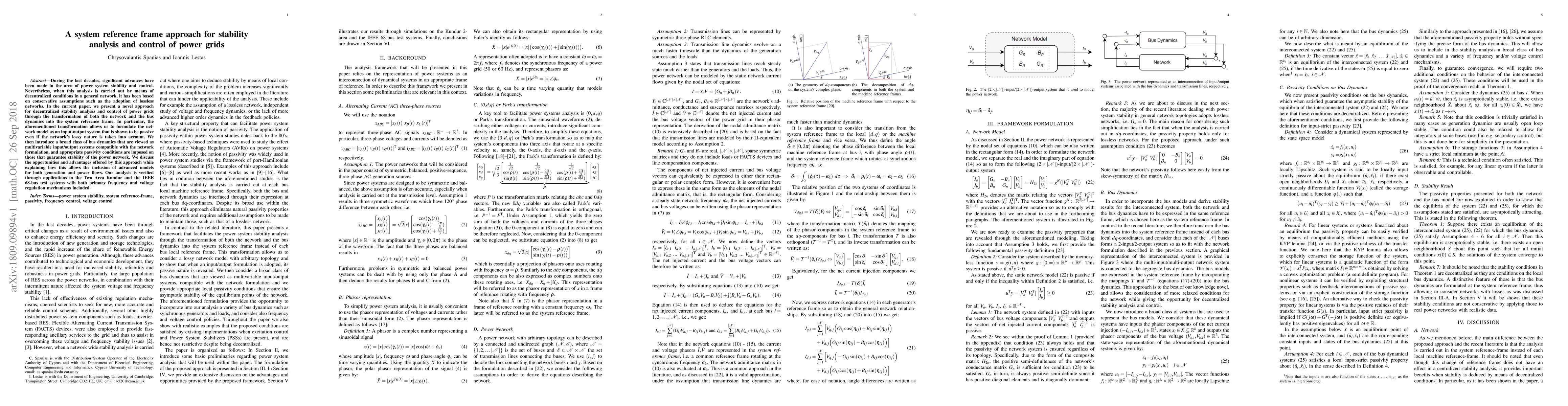 Researchers introduce a new approach to analyze and control power grid stability using a system reference frame, enabling more accurate models with advanced generation and flow dynamics. The method improves the inclusion of lossy networks and enhances stability analysis.