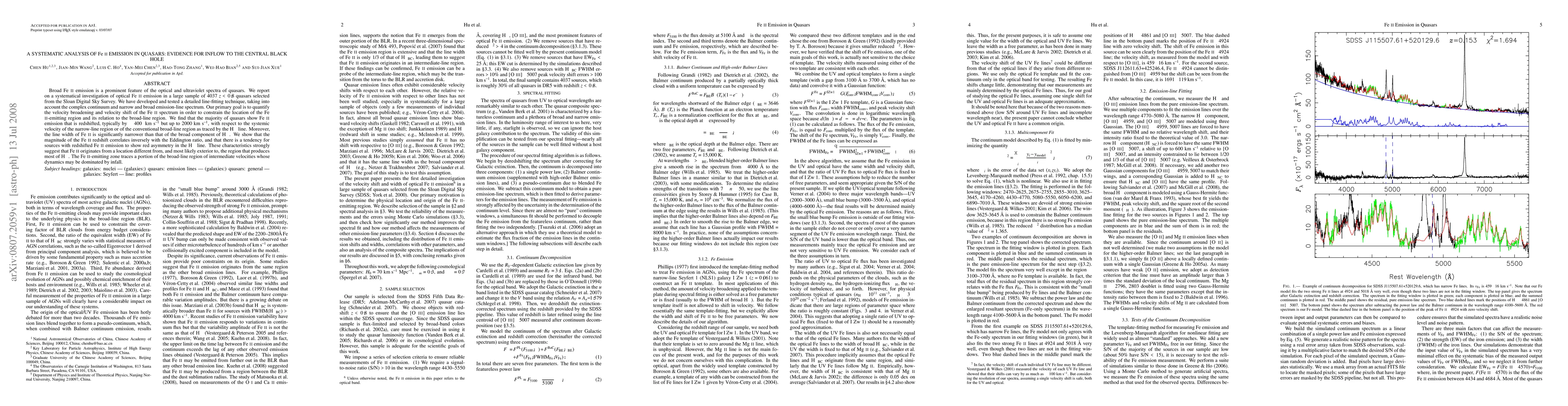 This study systematically analyzes Fe II emission in 4037 quasars, revealing redshifted Fe II typically by ~400 km/s, suggesting an inflow to the central black hole. The Fe II emission correlates inversely with the Eddington ratio, indicating it originates from an exterior region to the Hbeta-emitting zone.