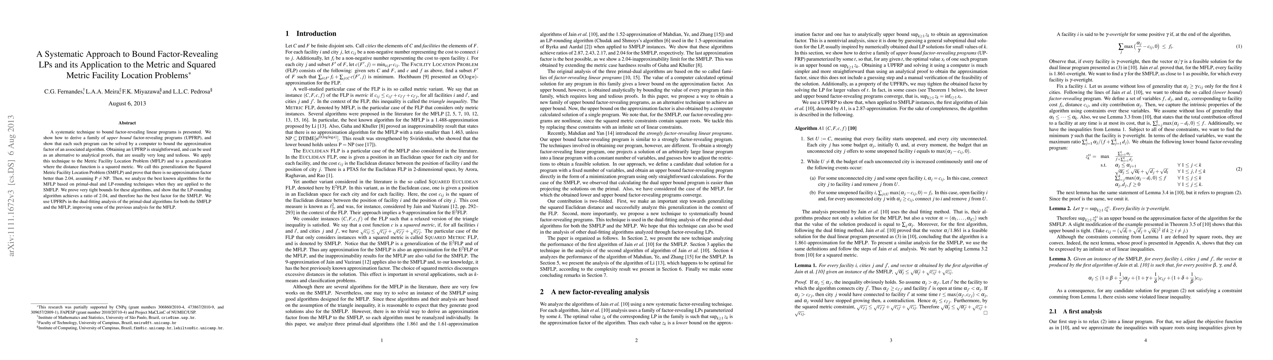 This paper introduces a systematic method to derive upper bound factor-revealing linear programs (UPFRP) to bound approximation factors of algorithms. It applies this technique to the Metric and Squared Metric Facility Location Problems, proving a 2.04 approximation factor for the latter, assuming P ≠ NP.