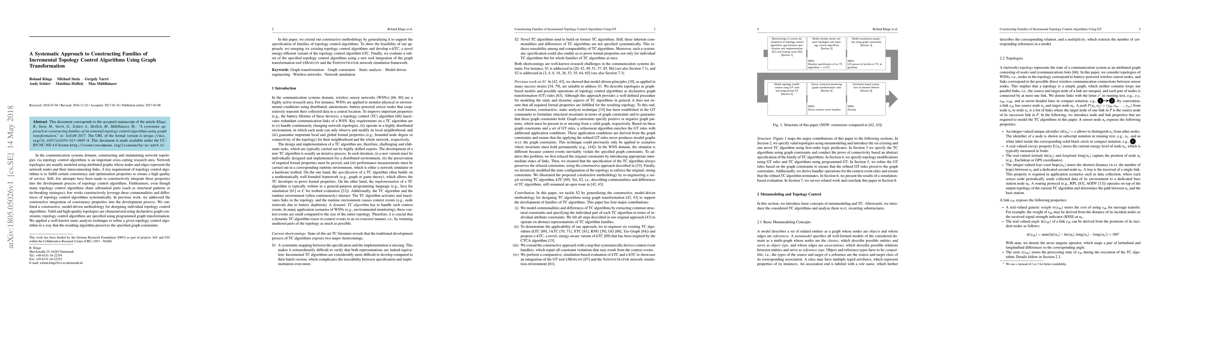This paper presents a systematic methodology for constructing families of incremental topology control algorithms using graph transformation. It extends previous work by generalizing the model-driven approach to include multiple algorithms, demonstrating its application through the refinement of existing algorithms and the development of a new energy-efficient variant.
