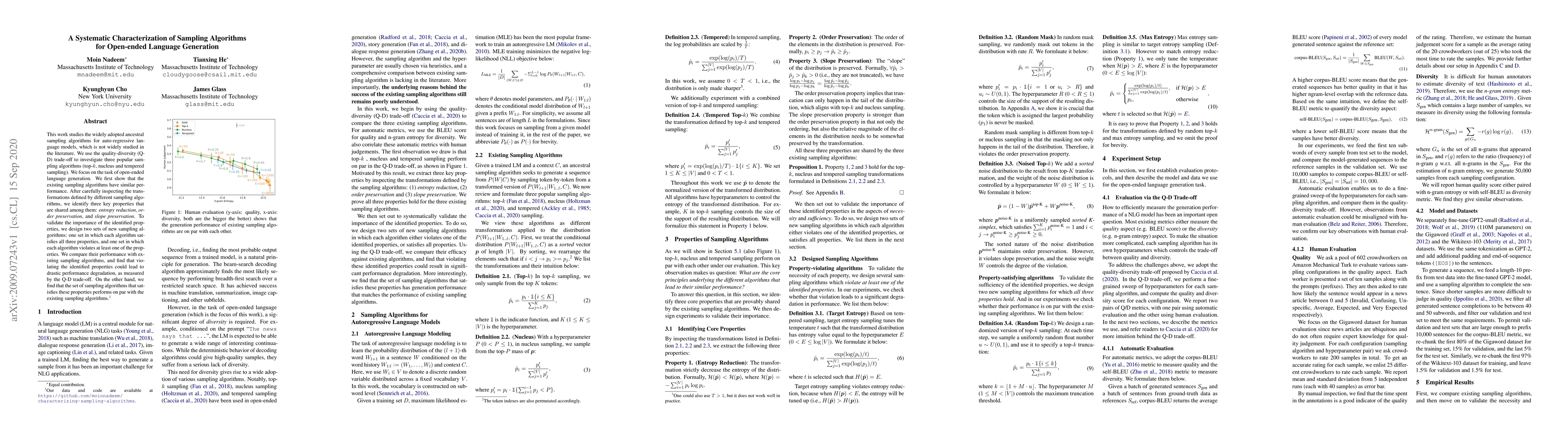 Researchers study ancestral sampling algorithms for open-ended language generation, identifying key properties that affect performance, and find that satisfying these properties leads to comparable results with existing algorithms.
