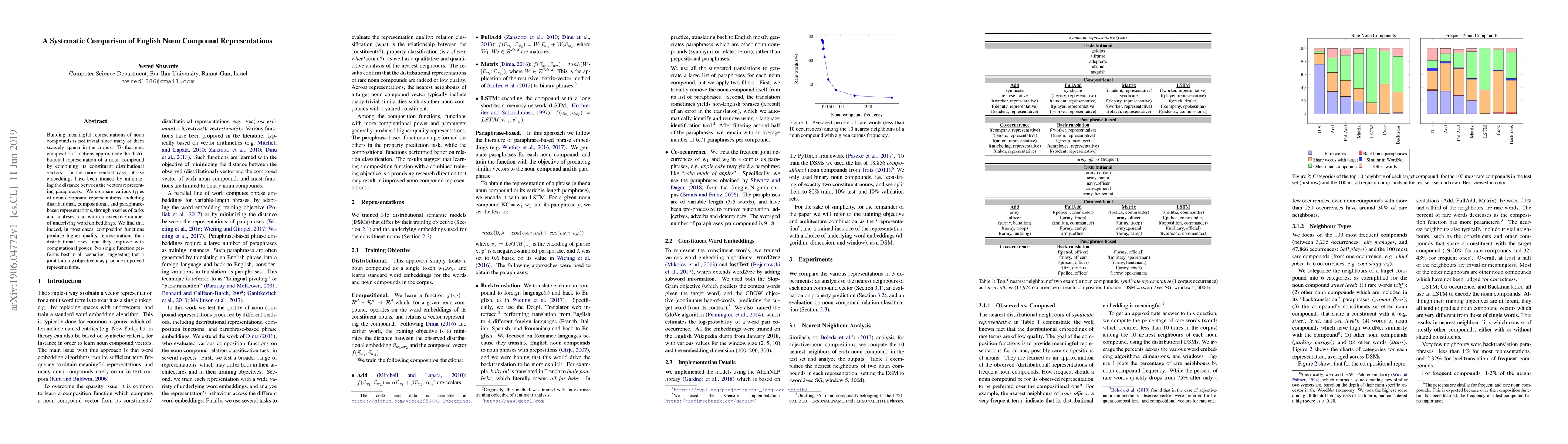 This paper systematically compares different representations of English noun compounds, finding that composition functions generally yield higher quality representations than distributional methods. It concludes that no single function is universally best, suggesting that a joint training approach may lead to improved results.
