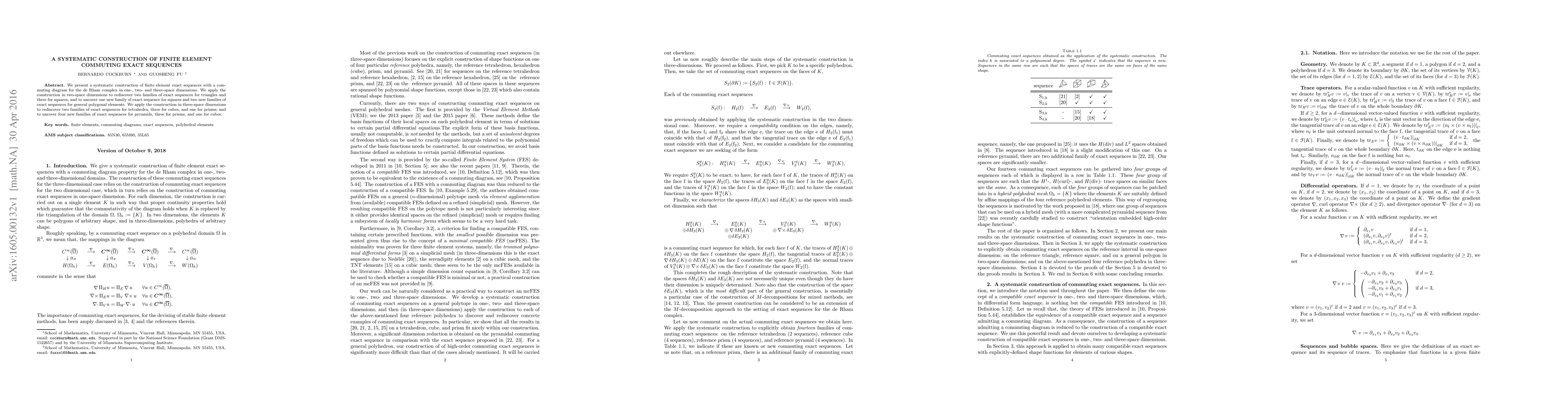 This paper systematically constructs finite element commuting exact sequences for the de Rham complex across one-, two-, and three-dimensional spaces, rediscovering known sequences and uncovering new ones for various polygonal and polyhedral elements.