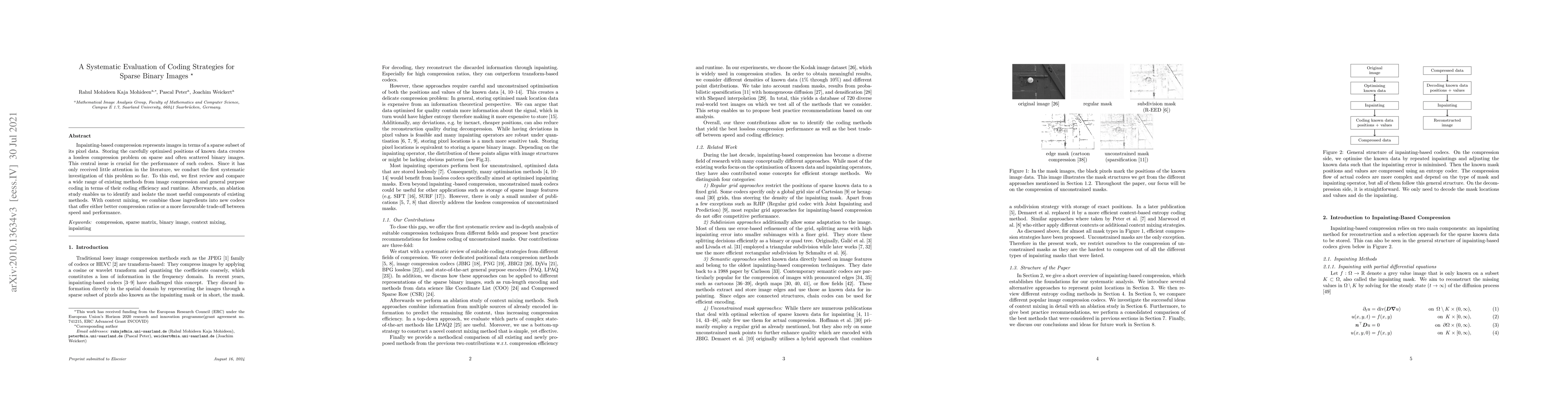 Researchers evaluated various coding strategies for compressing sparse binary images, identifying new methods that balance compression ratios with speed and performance.