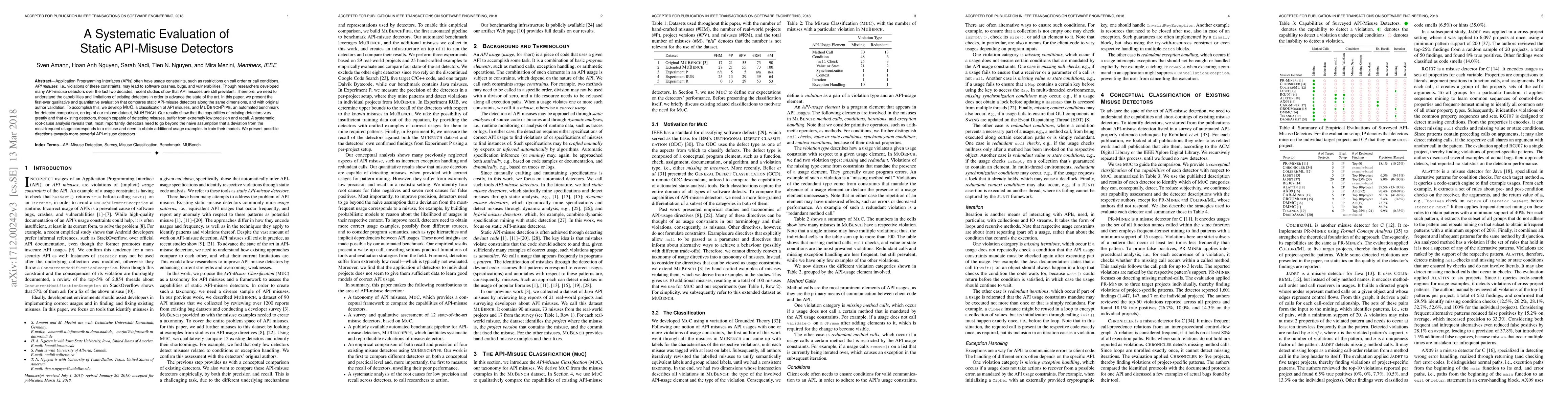 This paper conducts a comprehensive evaluation of static API-misuse detectors, revealing significant variability in their capabilities and highlighting low precision and recall. The study suggests that detectors need to move beyond frequent usage patterns and incorporate more training examples to improve detection accuracy.