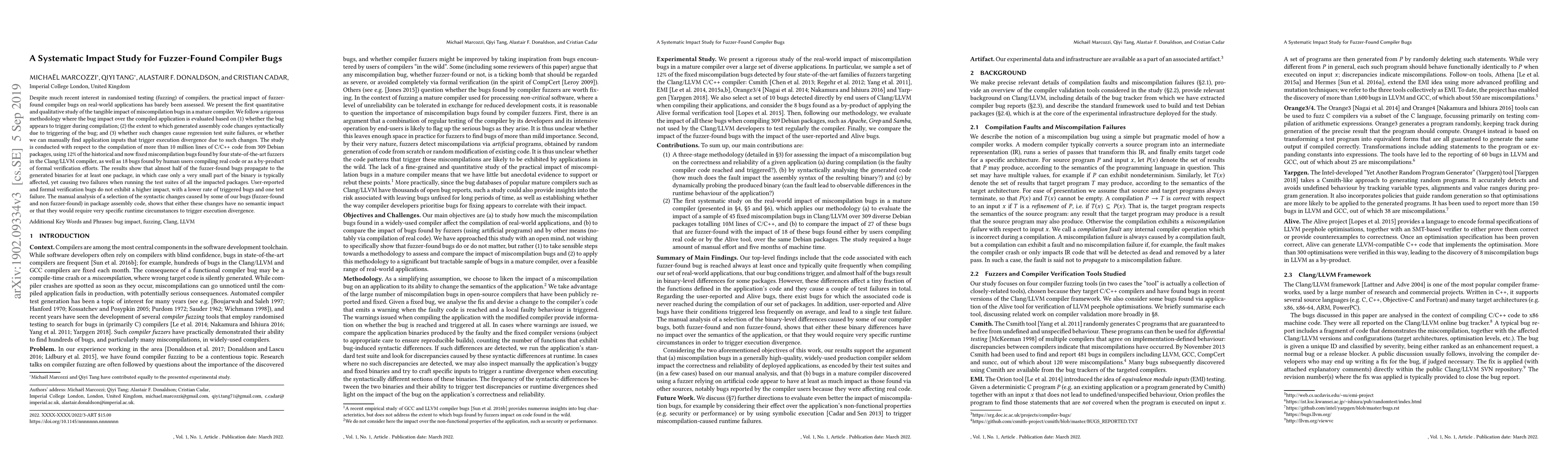 This work distinguishes itself by focusing on the practical impact of fuzzer-found compiler bugs on real-world applications, unlike previous research that primarily concentrates on understanding compiler bugs or testing techniques themselves.