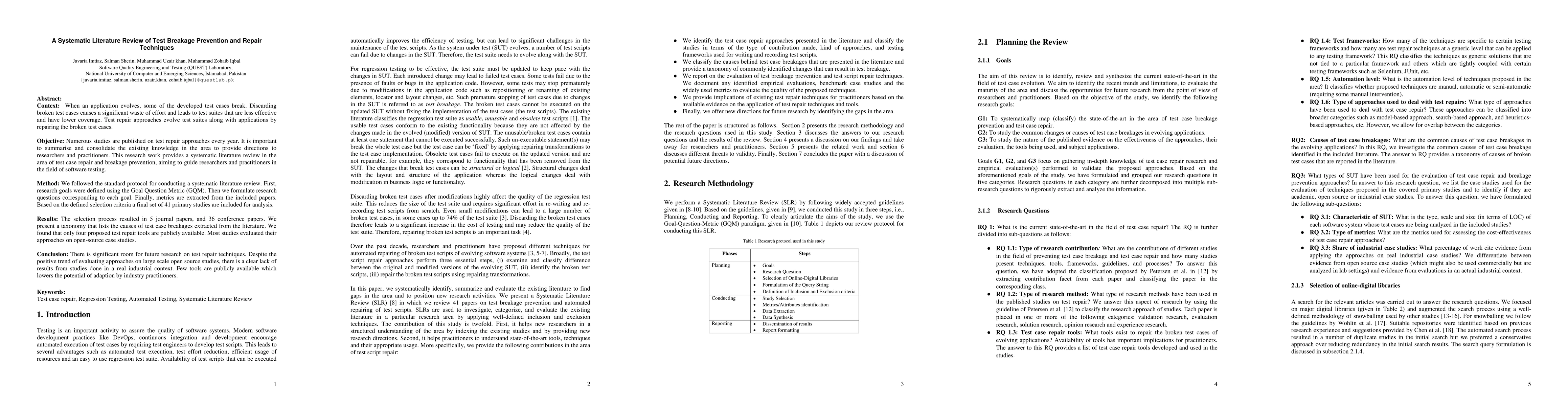 This paper conducts a systematic literature review of test case repair and breakage prevention techniques, identifying 41 studies to consolidate existing knowledge. It highlights a taxonomy of test case breakage causes and notes the scarcity of publicly available tools, emphasizing the need for more research, especially in industrial contexts.