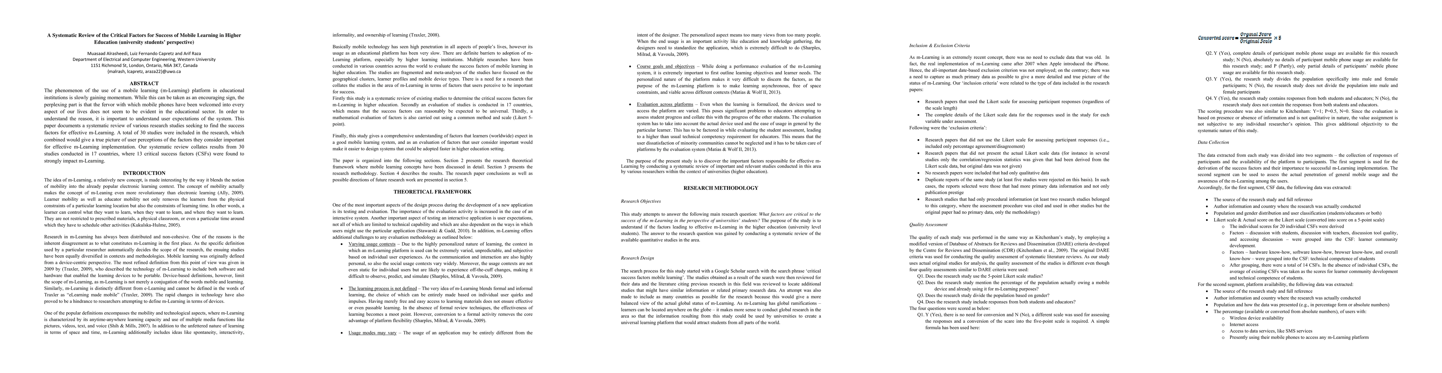 The phenomenon of the use of a mobile learning (m-Learning) platform in educational institutions is slowly gaining momentum. While this can be taken as an encouraging sign, the perplexing part is that the fervor with which mobile phones have been welcomed into every aspect of our lives does not seem to be evident in the educational sector. In order to understand the reason, it is important to understand user expectations of the system. This paper documents a systematic review of various research studies seeking to find the success factors for effective m-Learning. A total of 30 studies were included in the research, which combined would give a true picture of user perceptions of the factors they consider important for effective m-Learning implementation. Our systematic review collates results from 30 studies conducted in 17 countries, where 13 critical success factors (CSFs) were found to strongly impact m-Learning.