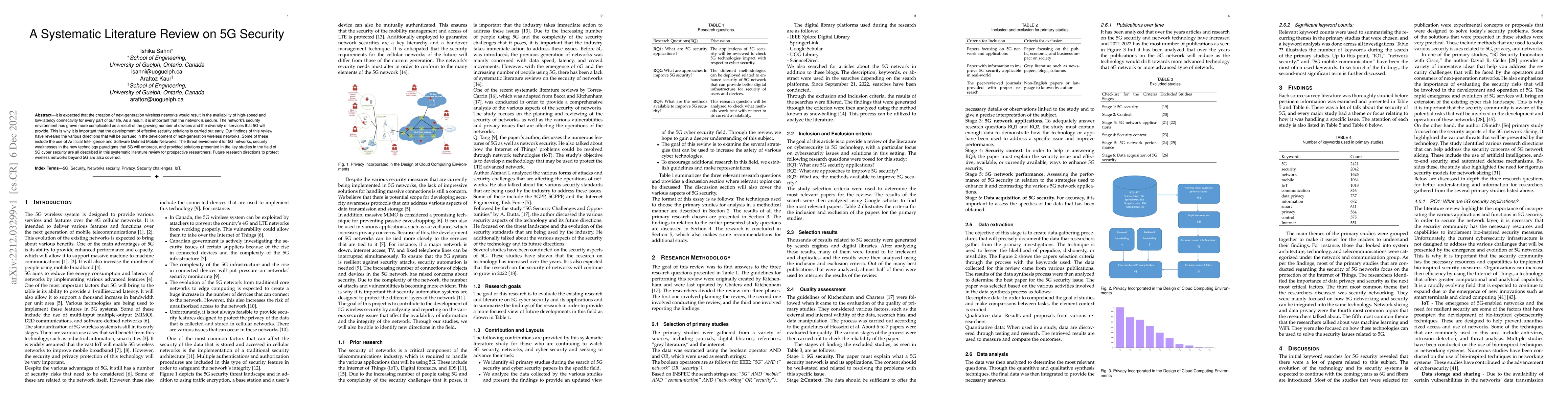 It is expected that the creation of next-generation wireless networks would result in the availability of high-speed and low-latency connectivity for every part of our life. As a result, it is important that the network is secure. The network's security environment has grown more complicated as a result of the growing number of devices and the diversity of services that 5G will provide. This is why it is important that the development of effective security solutions is carried out early. Our findings of this review have revealed the various directions that will be pursued in the development of next-generation wireless networks. Some of these include the use of Artificial Intelligence and Software Defined Mobile Networks. The threat environment for 5G networks, security weaknesses in the new technology paradigms that 5G will embrace, and provided solutions presented in the key studies in the field of 5G cyber security are all described in this systematic literature review for prospective researchers. Future research directions to protect wireless networks beyond 5G are also covered.