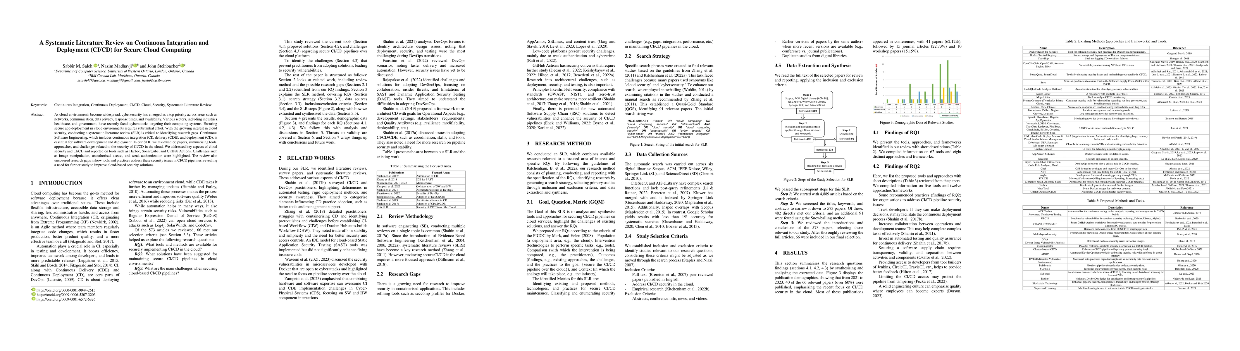 A systematic literature review on continuous integration and deployment for secure cloud computing highlights tools and challenges in securing CI/CD pipelines, revealing research gaps that need further study to improve cloud-based security solutions.