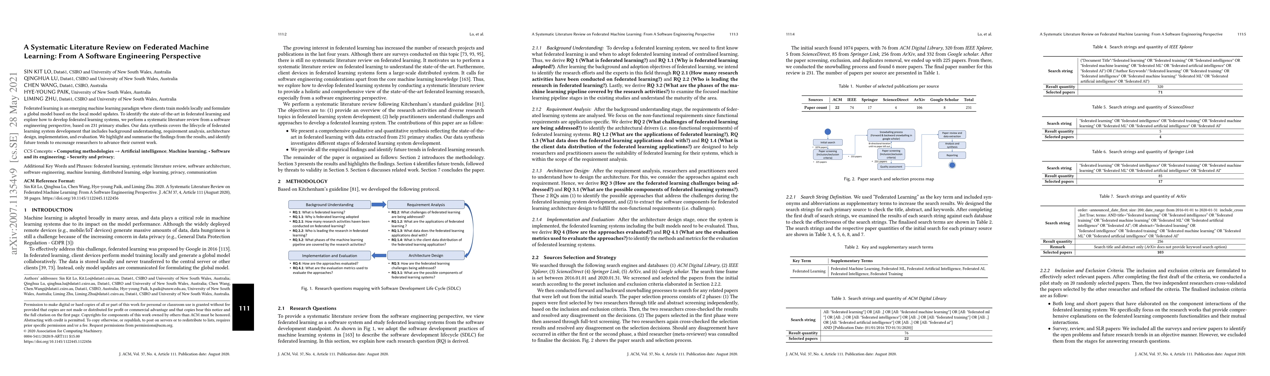 This paper systematically reviews 231 studies to explore federated learning from a software engineering perspective, covering the entire development lifecycle, and identifies future research trends to advance the field.