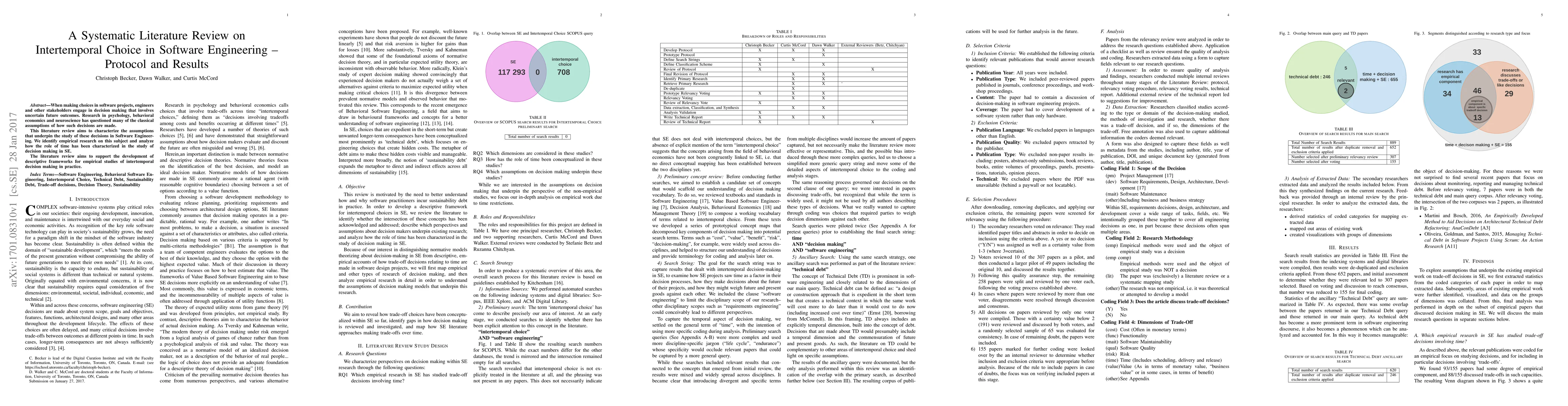 This literature review examines how time influences decisions in software engineering, challenging classical assumptions about decision-making processes. It aims to develop descriptive frameworks for empirical studies of intertemporal choice in software projects.