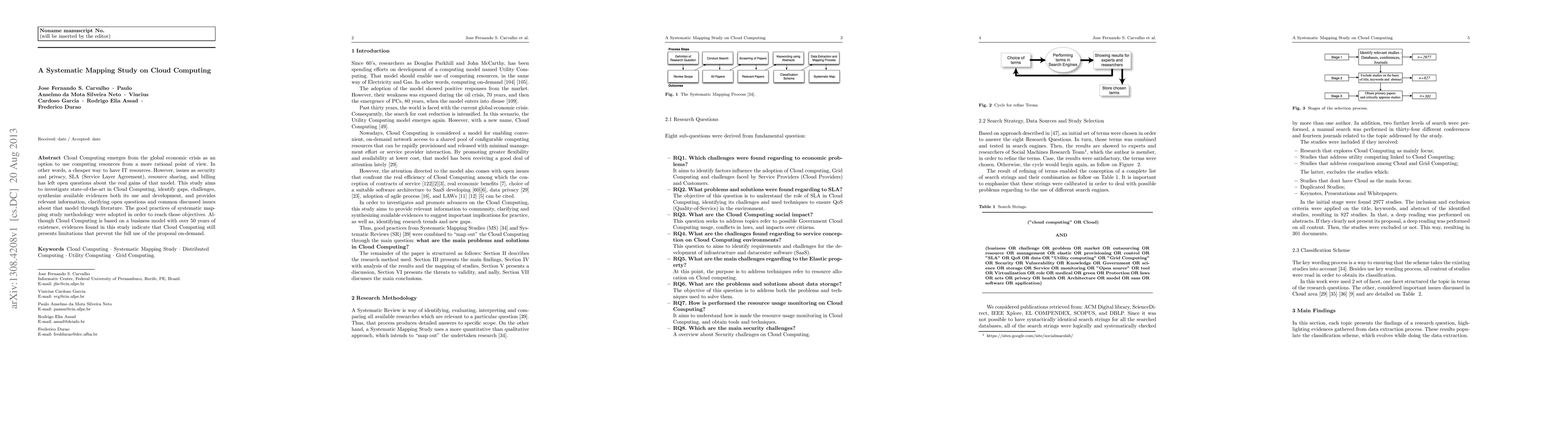 Cloud Computing emerges from the global economic crisis as an option to use computing resources from a more rational point of view. In other words, a cheaper way to have IT resources. However, issues as security and privacy, SLA (Service Layer Agreement), resource sharing, and billing has left open questions about the real gains of that model. This study aims to investigate state-of-the-art in Cloud Computing, identify gaps, challenges, synthesize available evidences both its use and development, and provides relevant information, clarifying open questions and common discussed issues about that model through literature. The good practices of systematic map- ping study methodology were adopted in order to reach those objectives. Al- though Cloud Computing is based on a business model with over 50 years of existence, evidences found in this study indicate that Cloud Computing still presents limitations that prevent the full use of the proposal on-demand.