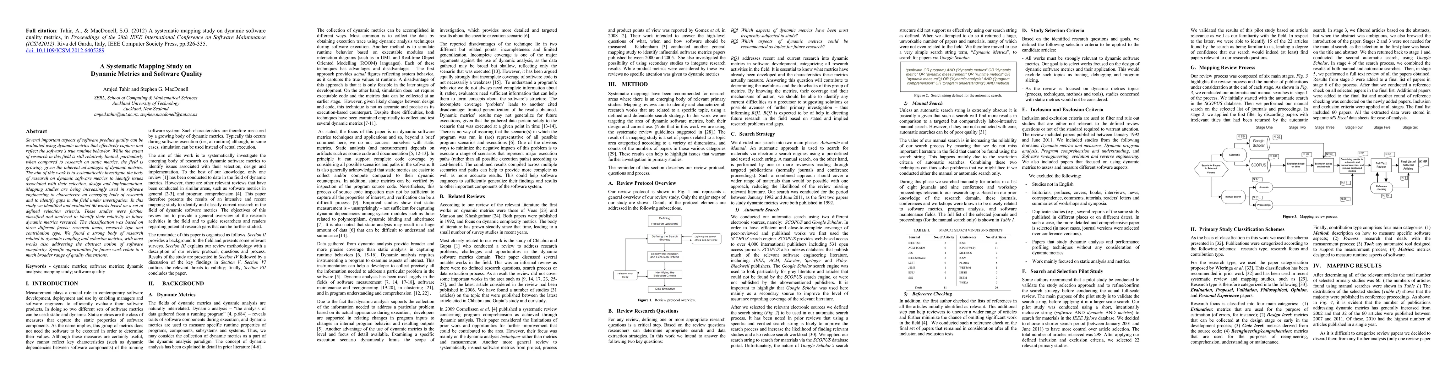 This paper conducts a systematic mapping study to evaluate research on dynamic software metrics, focusing on their selection, design, and implementation. The study identifies a significant body of work on dynamic coupling and cohesion metrics, while highlighting opportunities for future research across a broader range of quality dimensions.