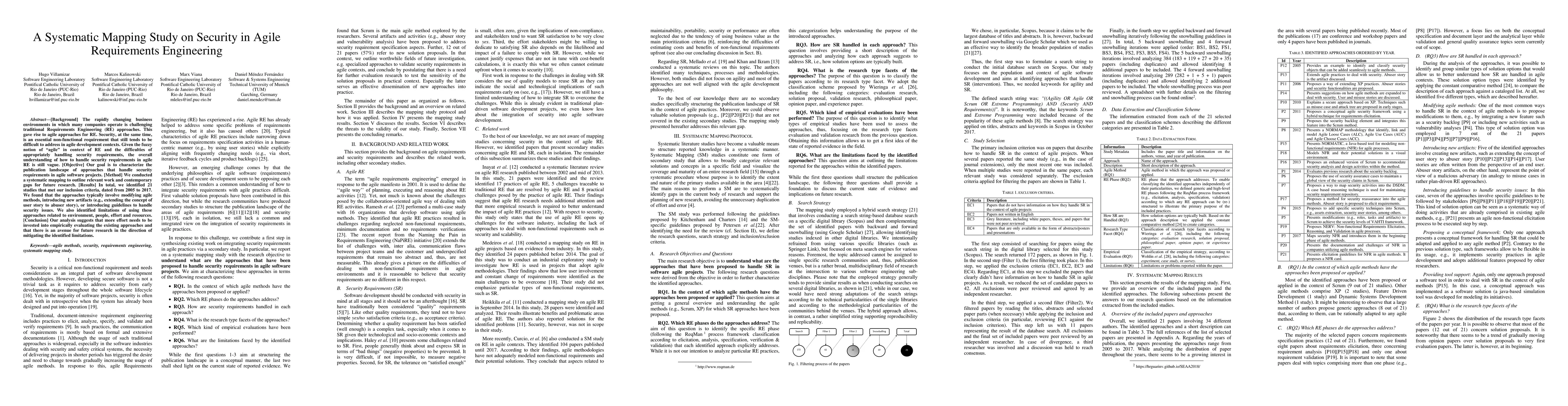 This paper systematically maps research on security in agile requirements engineering, identifying 21 studies from 2005 to 2017 that propose methods to integrate security into agile processes. The analysis highlights the need for more empirical evaluation and suggests avenues for future research to address identified limitations.