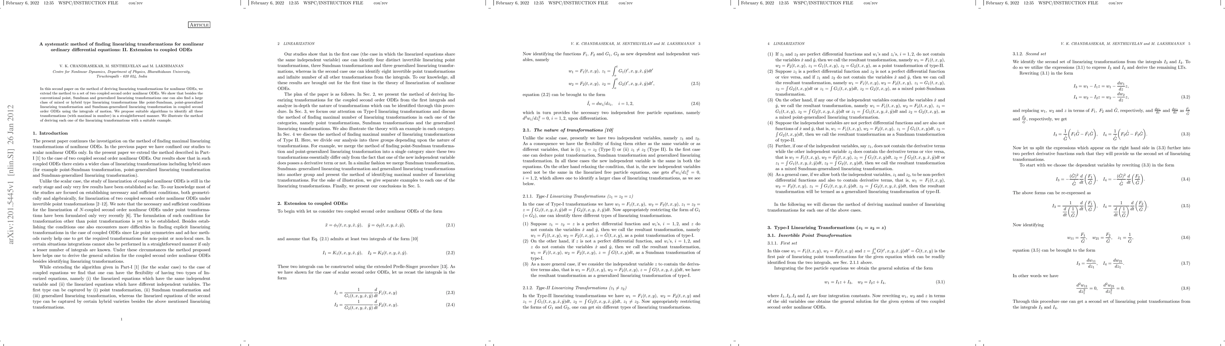 In this second paper on the method of deriving linearizing transformations for nonlinear ODEs, we extend the method to a set of two coupled second order nonlinear ODEs. We show that besides the conventional point, Sundman and generalized linearizing transformations one can also find a large class of mixed or hybrid type linearizing transformations like point-Sundman, point-generalized linearizing transformation and Sundman-generalized linearizing transformation in coupled second order ODEs using the integrals of motion. We propose suitable algorithms to identify all these transformations (with maximal in number) in a straightforward manner. We illustrate the method of deriving each one of the linearizing transformations with a suitable example.
