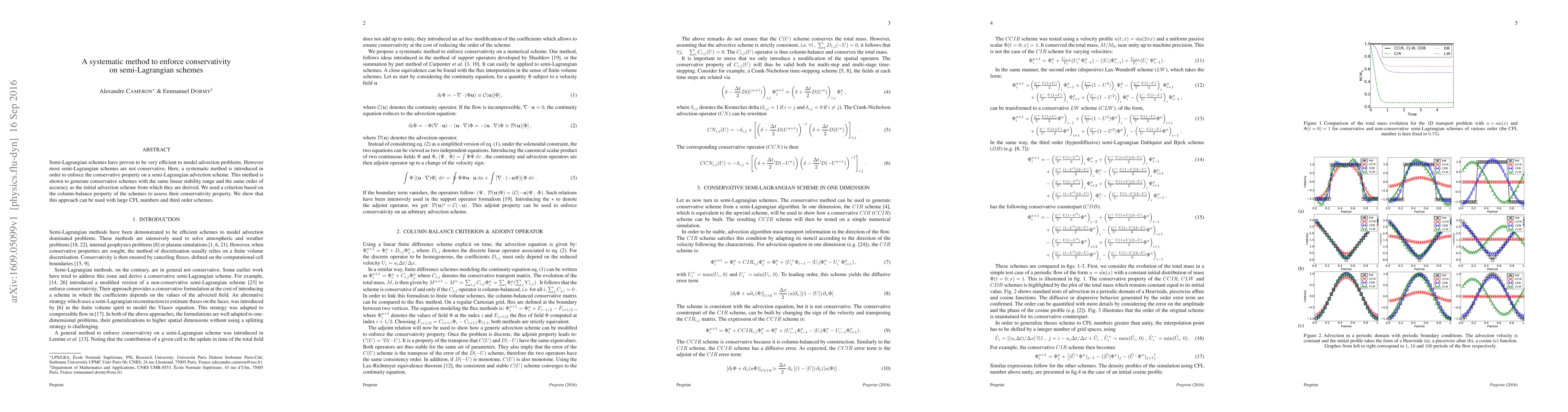 Researchers developed a systematic method to make semi-Lagrangian schemes conservative, preserving stability and accuracy while ensuring energy conservation.
