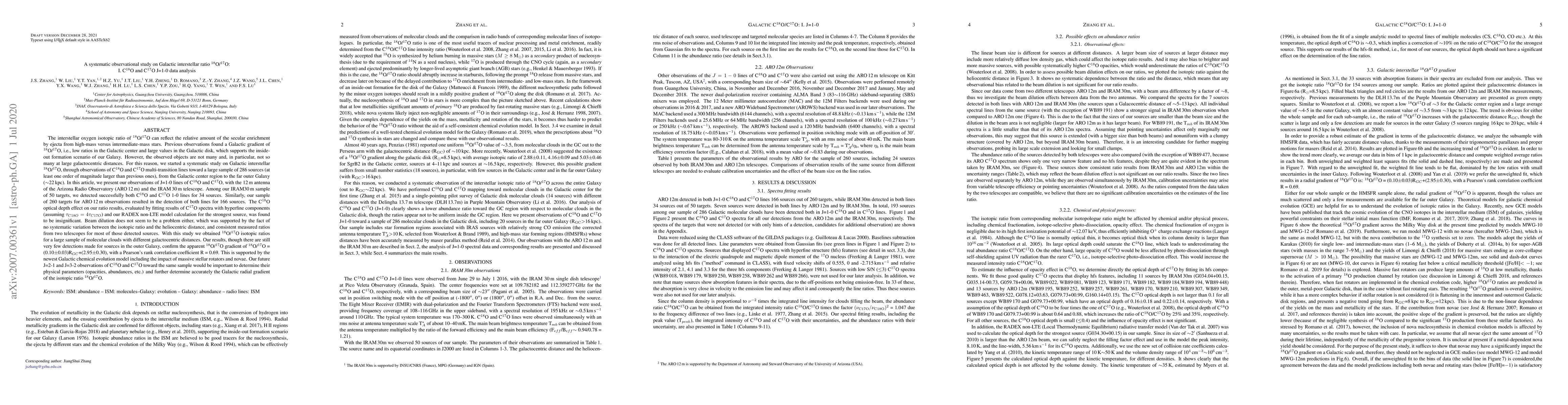 This study systematically observes the interstellar oxygen isotopic ratio 18O/17O across 286 sources using C18O and C17O J=1-0 lines, confirming a Galactic gradient supporting the inside-out formation scenario. The results show a consistent 18O/17O gradient with minimal optical depth effects and beam dilution issues.